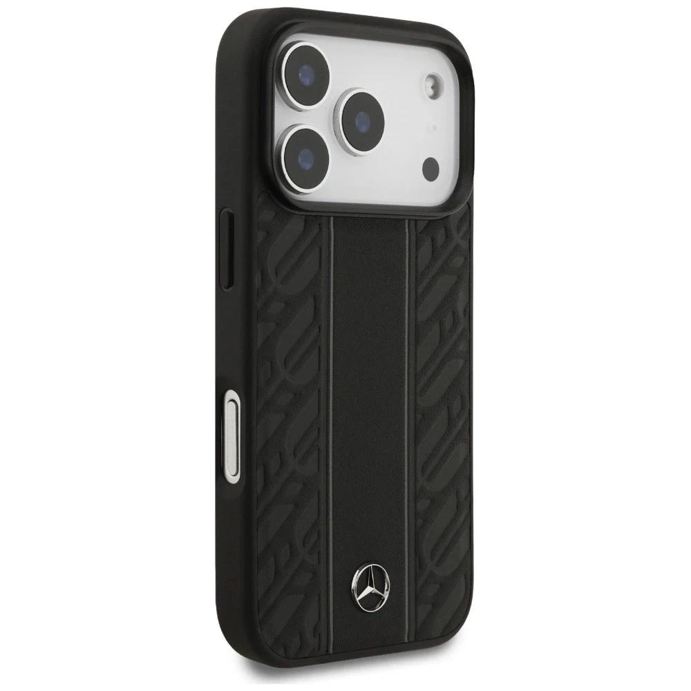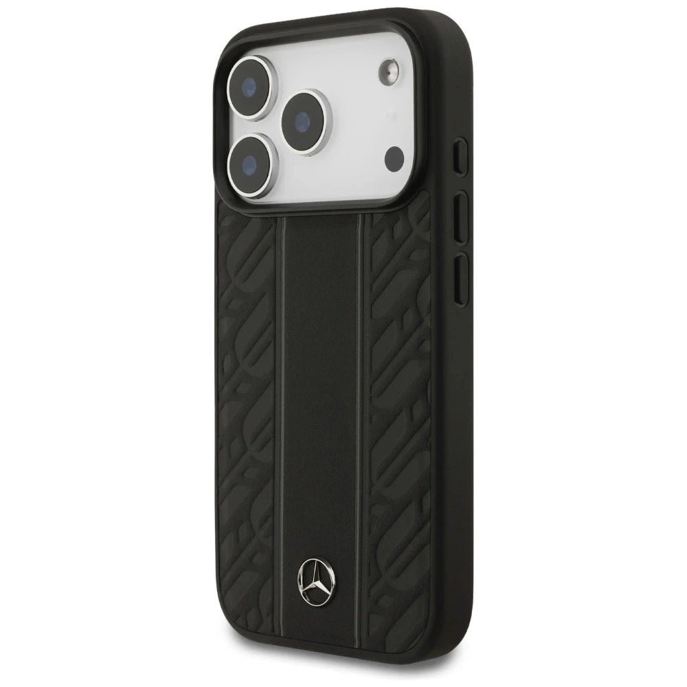 Etui Mercedes-Benz Leather Laurel Leaves Stripes MagSafe do iPhone 17 Pro to połączenie elegancji, jakości i funkcjonalności. Wykonane z naturalnej skóry, tworzywa TPU oraz PC, oferuje solidną ochronę, a jednocześnie podkreśla luksusowy charakter urządzenia.