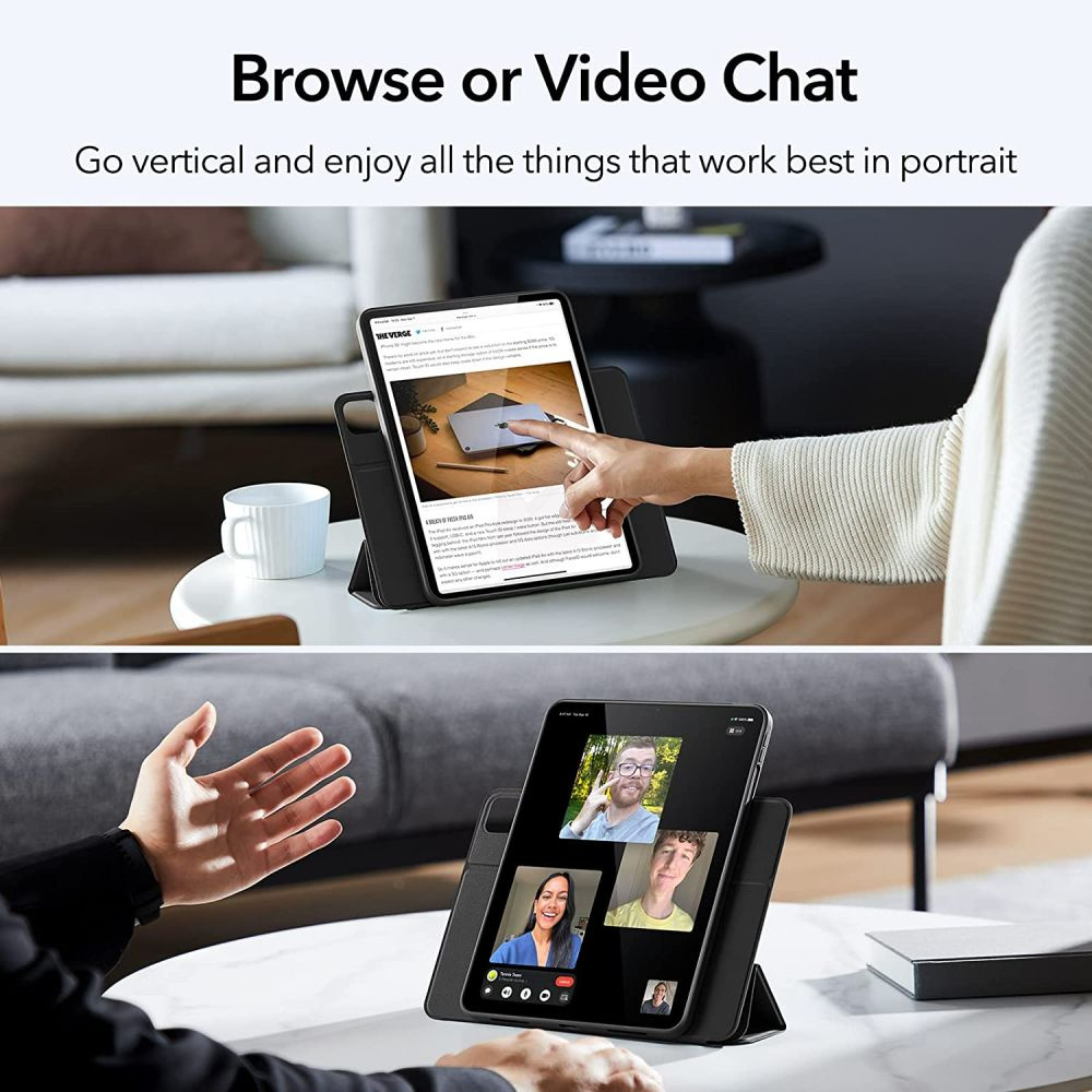 Das äußerst funktionale Zubehör Rebound Hybrid ist eine Kombination aus Schutzhülle und abnehmbarer, magnetischer Hülle, die sich jederzeit abnehmen und in einen praktischen Ständer verwandeln lässt.