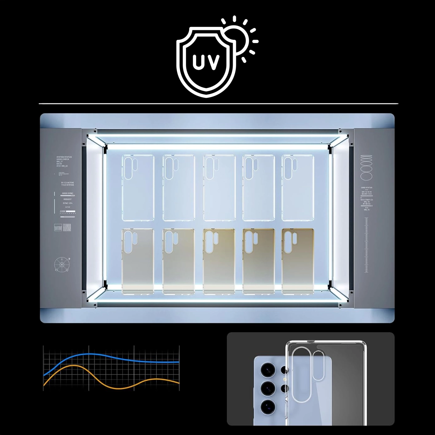 ✅ Das Gehäuse der Ultra Hybrid -Serie verfügt über eine einteilige Konstruktion, die aus Polycarbonat, einer transparenten Rückseite und einem flexiblen Rahmen besteht.