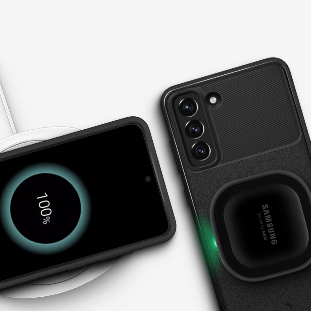 Die Spigen-Hülle aus der Caseology Vault-Serie für das Samsung Galaxy S21 FE besteht aus strapazierfähigem TPU, das unser Gerät vor Kratzern und unerwünschten Schäden bei unerwarteten Stürzen schützt.