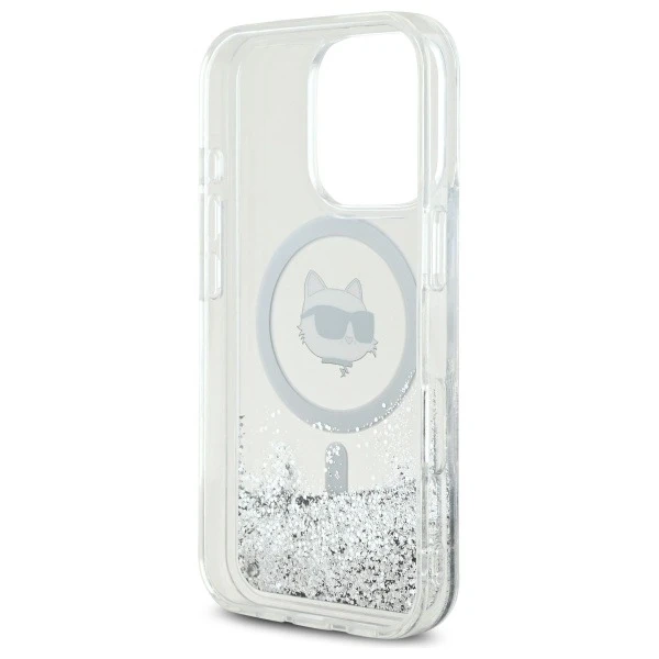 Karl Lagerfeld Liquid Glitter Choupette Head MagSafe Hülle für iPhone 16 Pro Max 6,9" Transparent