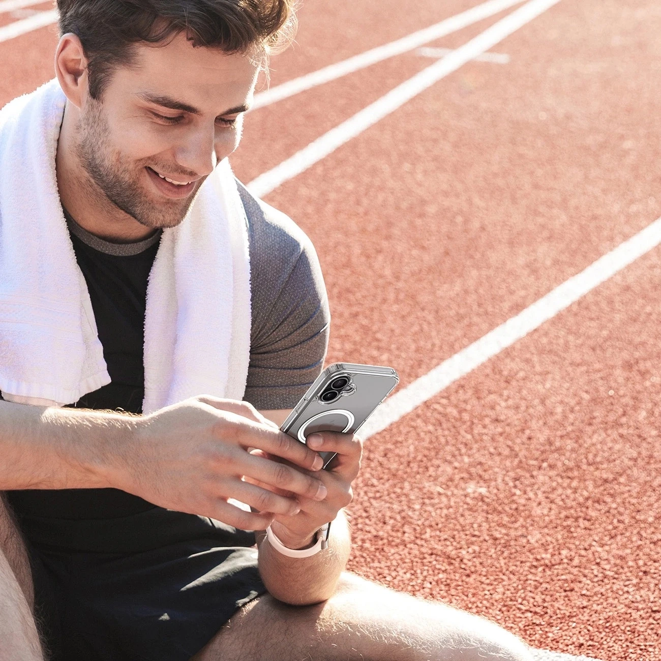 Konstrukcja etui łączy elastyczne TPU i trwały PC, które zabezpieczają telefon przed uszkodzeniami mechanicznymi i chronią etui przed żółknięciem. Poduszki powietrzne w narożnikach absorbują energię wstrząsów, a podwyższone krawędzie dodatkowo zabezpieczają ekran i soczewki aparatu. Dzięki temu iPhone jest chroniony ze wszystkich stron, niezależnie od sytuacji.