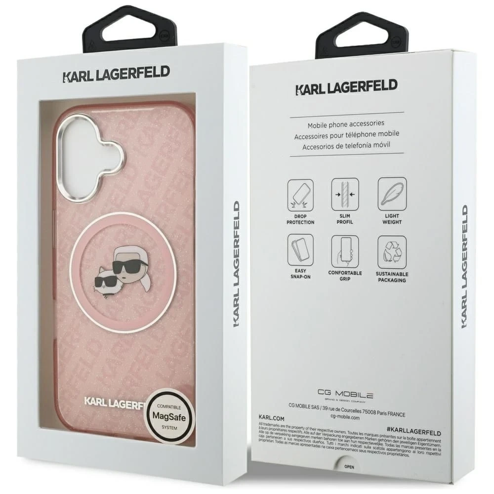 Etui Karl Lagerfeld IML Glitter Karl & Choupette Heads Logo MagSafe do iPhone 17 w kolorze różowym to idealny wybór dla osób, które chcą połączyć praktyczną ochronę z modnym designem. Charakterystyczny motyw Karl & Choupette ozdobiony połyskującym wykończeniem glitter sprawia, że etui staje się stylowym dodatkiem podkreślającym Twój indywidualny styl.