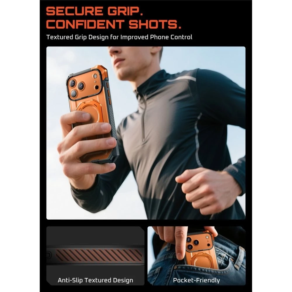 Etui Supcase UB Grip MagSafe do iPhone 17 Pro to solidna ochrona i funkcjonalność w jednym. Wykonane z odpornego na uderzenia tworzywa TPU, gwarantuje bezpieczeństwo urządzenia w codziennym użytkowaniu oraz w trudnych warunkach. Wzmocnione narożniki zapewniają skuteczną amortyzację upadków zgodnie z wojskowym standardem MIL-STD 810G, potwierdzonym testami z wysokości do 15 stóp (4,5 m).