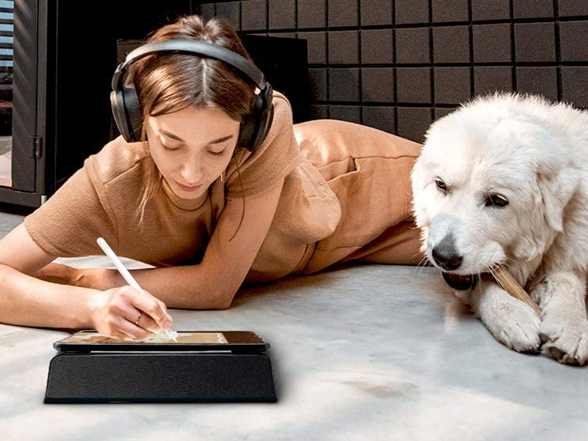 Zusätzlich schützt eine praktische Lasche den Apple Pen vor dem Herausfallen. Darüber hinaus lässt sich die Frontklappe zu einem funktionalen Ständer zusammenklappen.