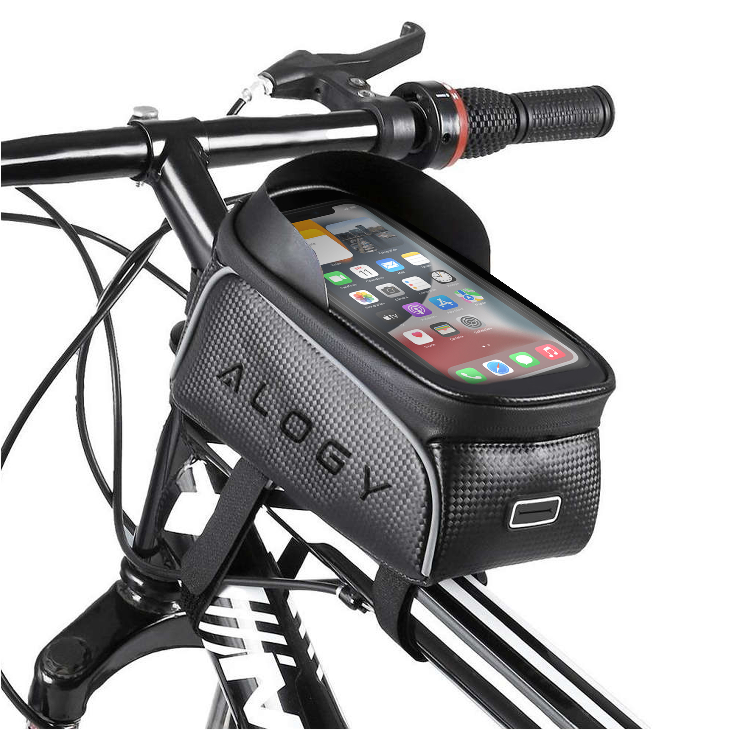 Die Fahrradtasche von Alogy ist eine universelle Rahmentasche, mit der Sie Ihre persönlichen Gegenstände und das Telefon während der Fahrt bequem verstauen können .