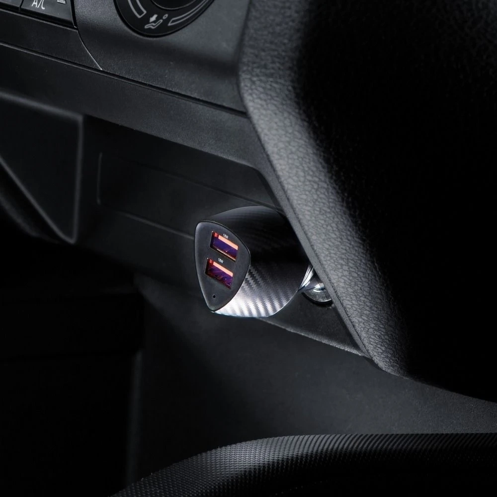 Extrem funktionales Autoladegerät aus der FORCELL CARBON-Serie. Ausgestattet mit einem dualen USB-Ladeanschluss. Unterstützt das Schnellladeprotokoll QC 3.0. Verfügt über ein mehrstufiges Sicherheitssystem.