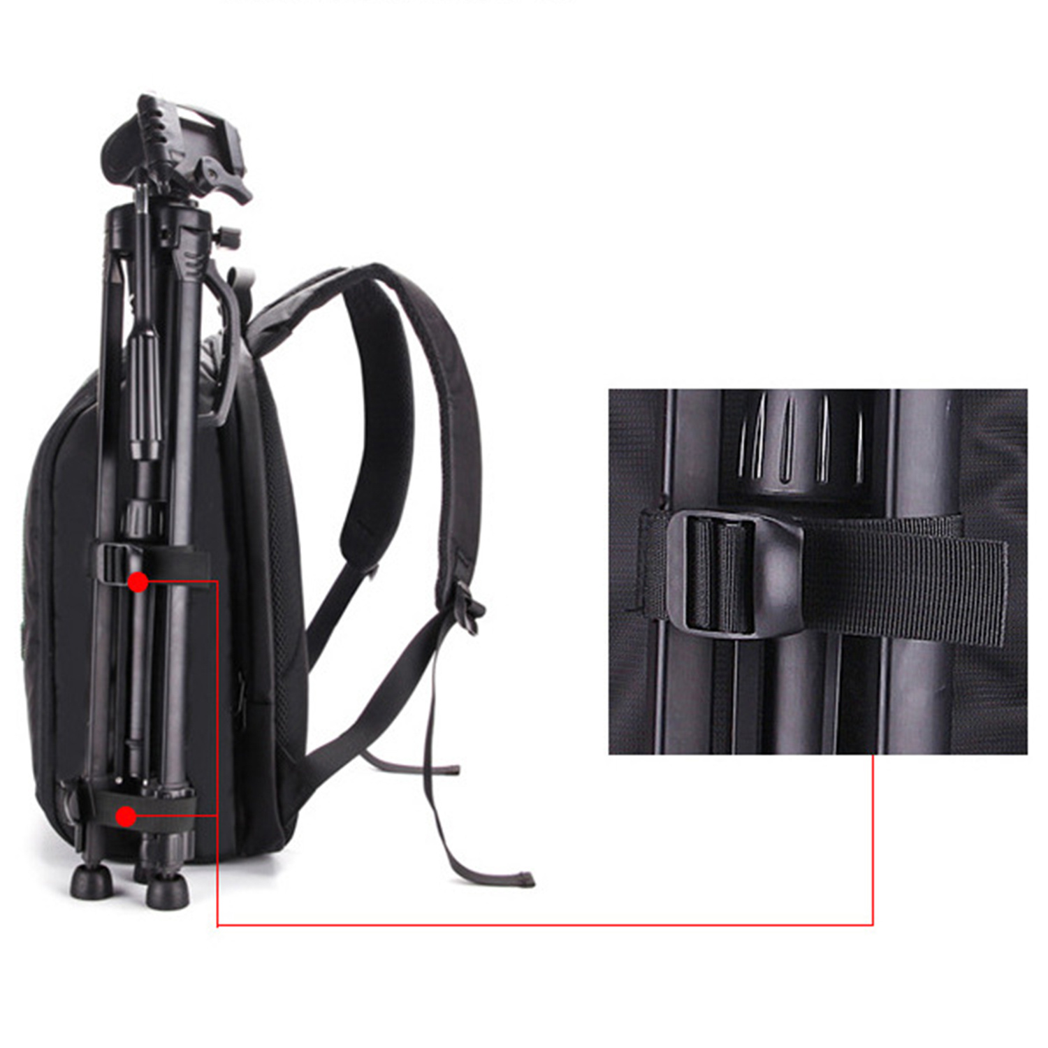 Das Design des Rucksacks zeichnet sich durch verstärkte Nähte aus, was die Haltbarkeit und Widerstandsfähigkeit gegenüber Belastungen erhöht, was besonders beim Transport von Fotoausrüstung und anderen wertvollen Gegenständen wichtig ist.