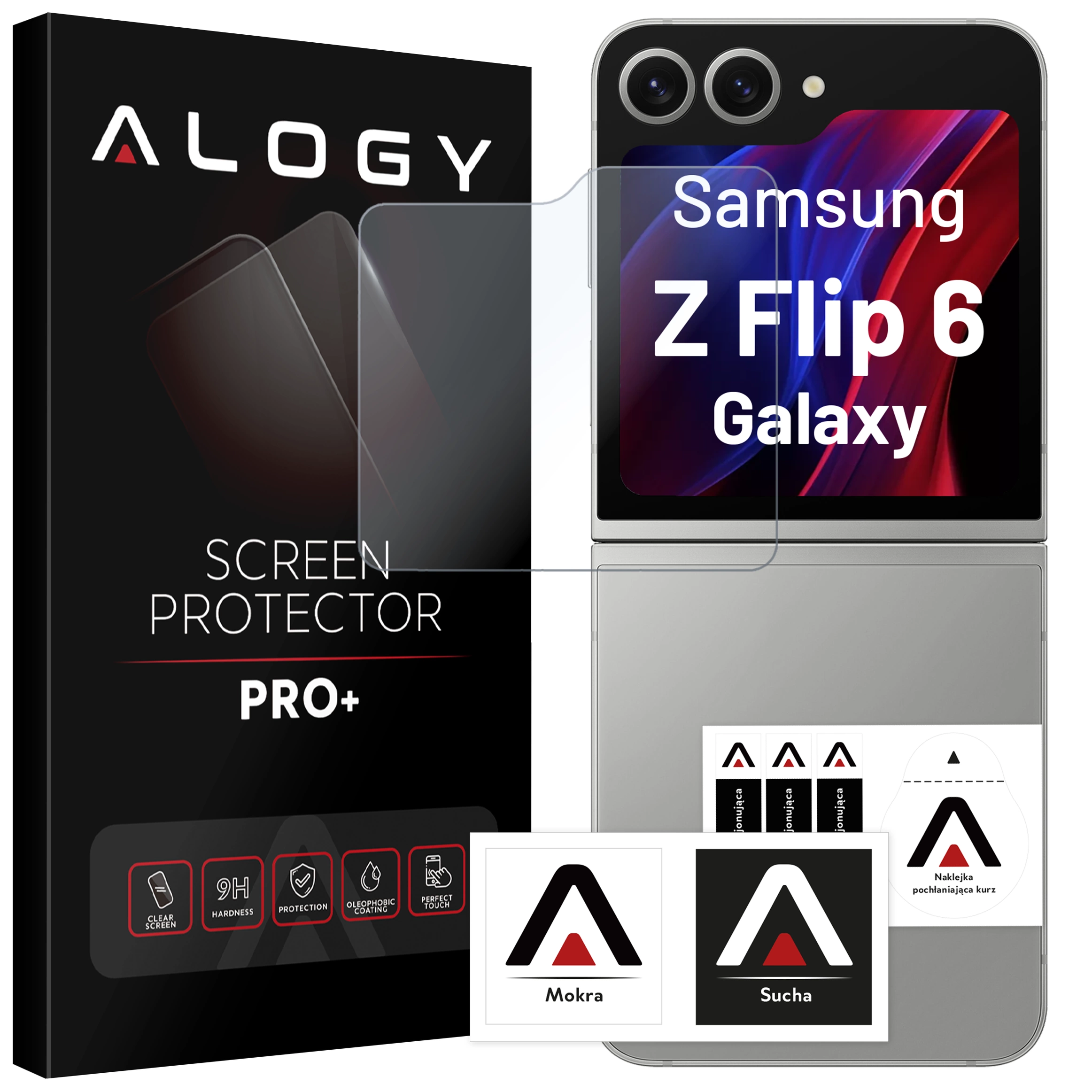• Gehärtetes Glas für Samsung Galaxy Z Flip 6 9H Alogy Heavy Pro ™️ Displayschutzfolie aus speziell verarbeitetem, zusätzlich verstärktem 9H-gehärtetem Glas, schützt das Display effektiv vor Kratzern und Beschädigungen.
