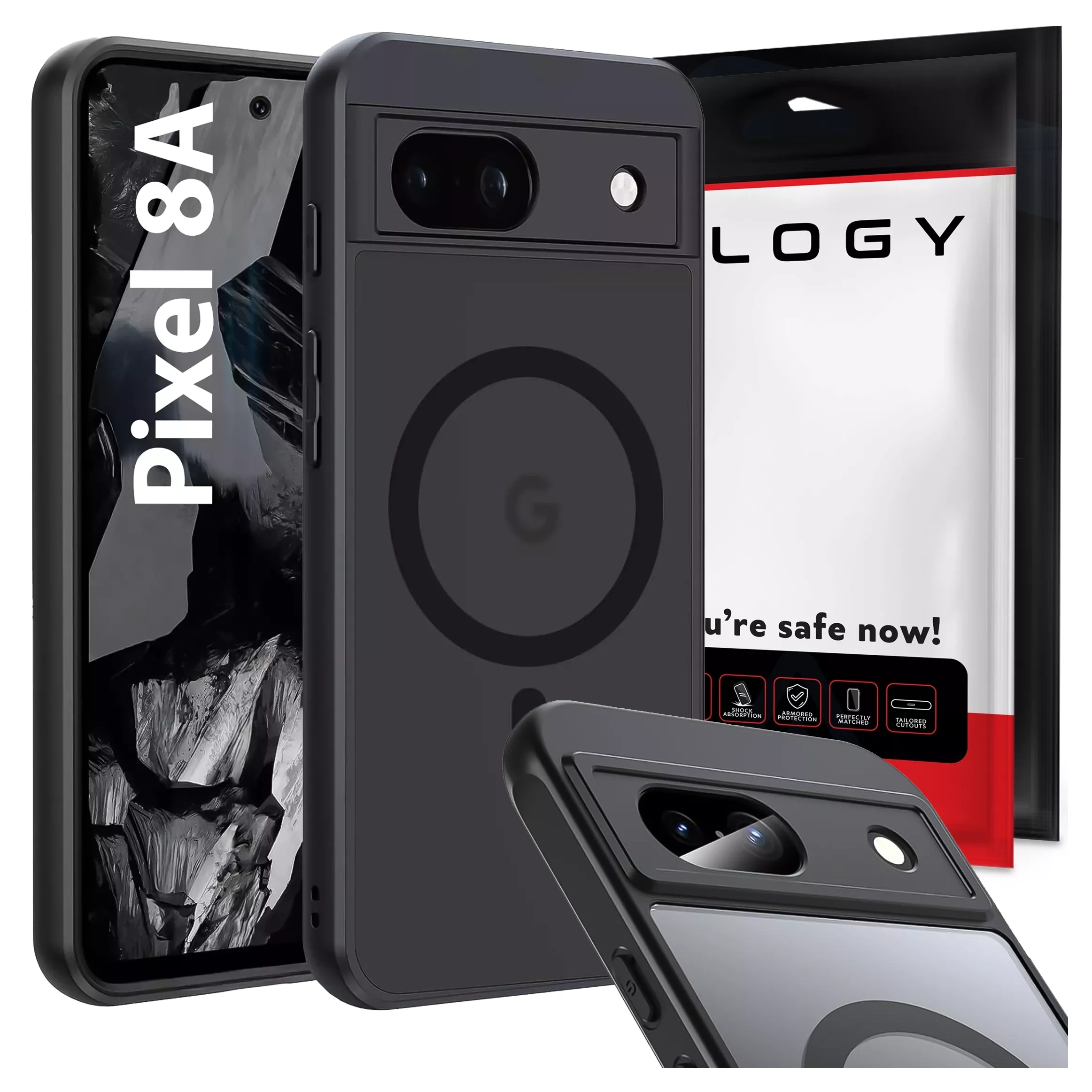 Google Pixel 8a Hülle Alogy MagSafe Hybrid Matte Case MagMat matte schwarze Rückseite x 1