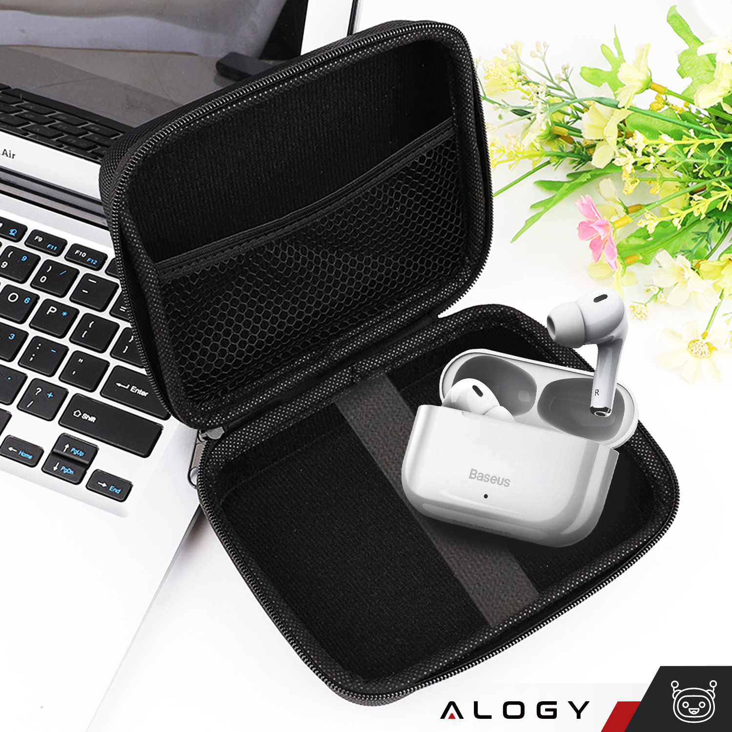 • Große Tasche mit Reißverschluss. Die universelle Tasche Alogy Protect für Zubehör, Kopfhörerkabel und Ladegerät ermöglicht es Ihnen, Ihr gesamtes Zubehör zusammen aufzubewahren. Dadurch bleiben die Dinge dort, wo sie sind, ohne unnötiges Suchen.