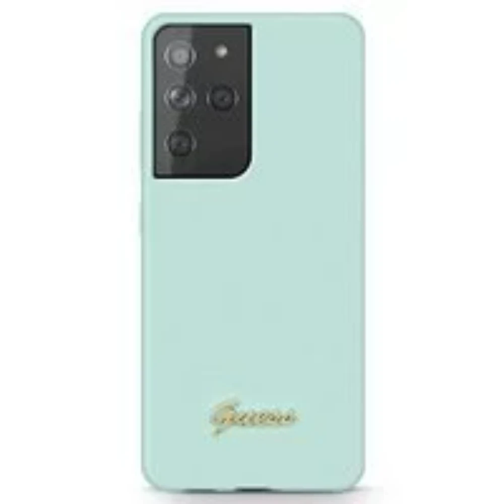 Guess GUHCS21LLSLMGLB S21 Ultra G998 blau / blau Hardcase Silikon Schriftzug Metall Logo x 1