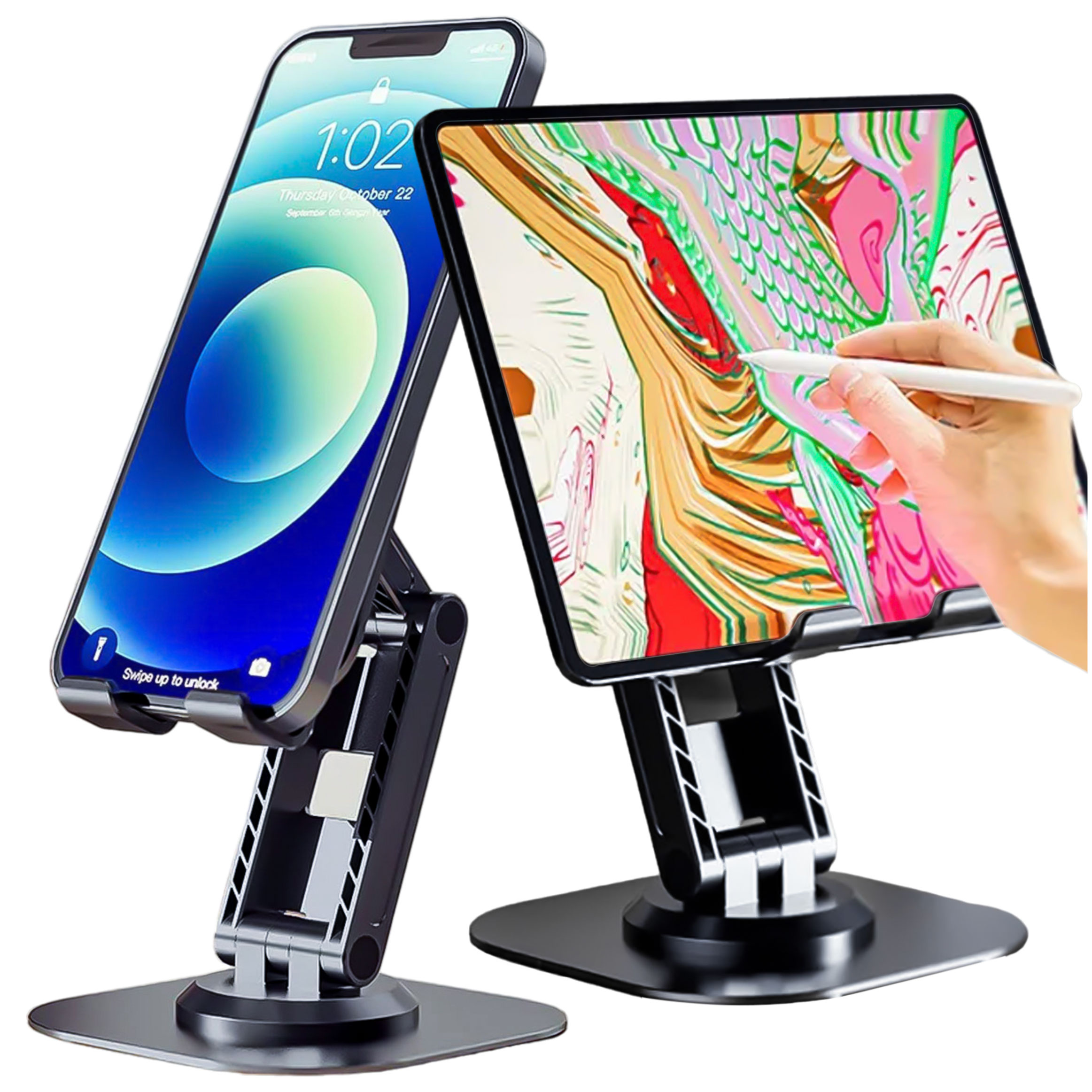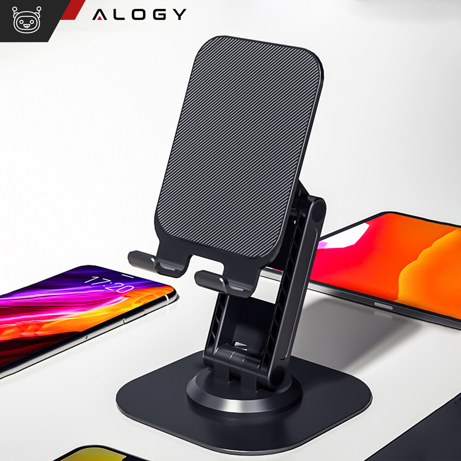 • Der um 360 Grad verstellbare, drehbare Tischständerhalter von Alogy für ein Telefon oder ein Aluminium-Tablet ist ein unersetzliches Schreibtischgerät, mit dem Sie Ihre mobilen Geräte bequem platzieren können. Gummipads an der Unterseite verhindern ein Ve