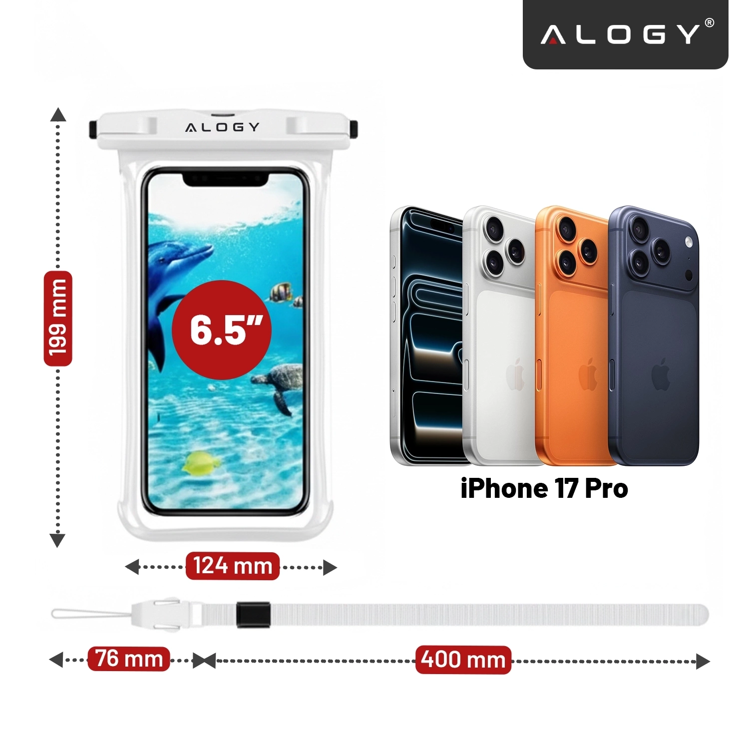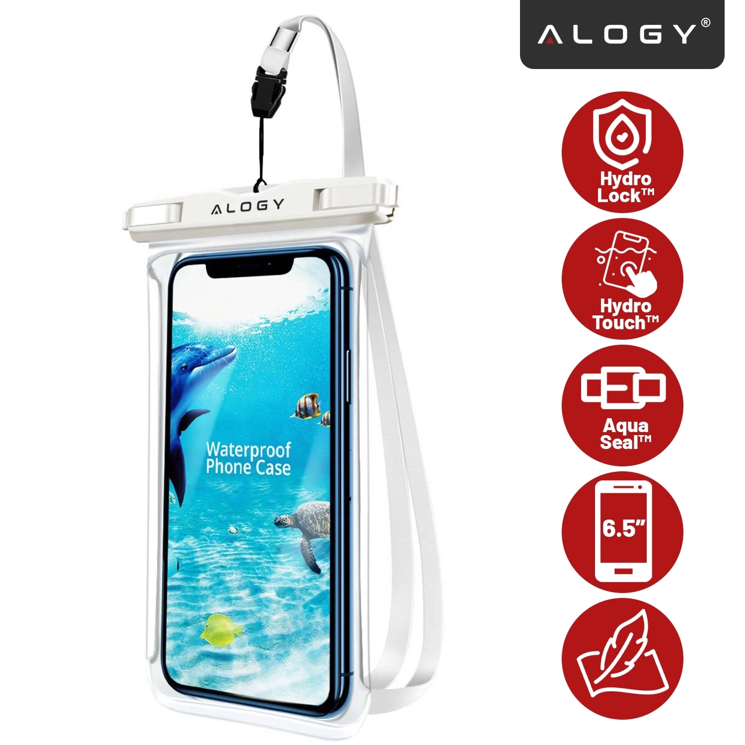 • Die wasserdichte universelle wasserdichte Alogy-Hülle IPX8 bis 6,5 ist eine Hülle mit einem sicheren und praktischen Verschlusssystem, das das Telefon vollständig vor Wasser, Schmutz und Beschädigungen schützt. Der Koffer ist perfekt für Wasserabenteuer.