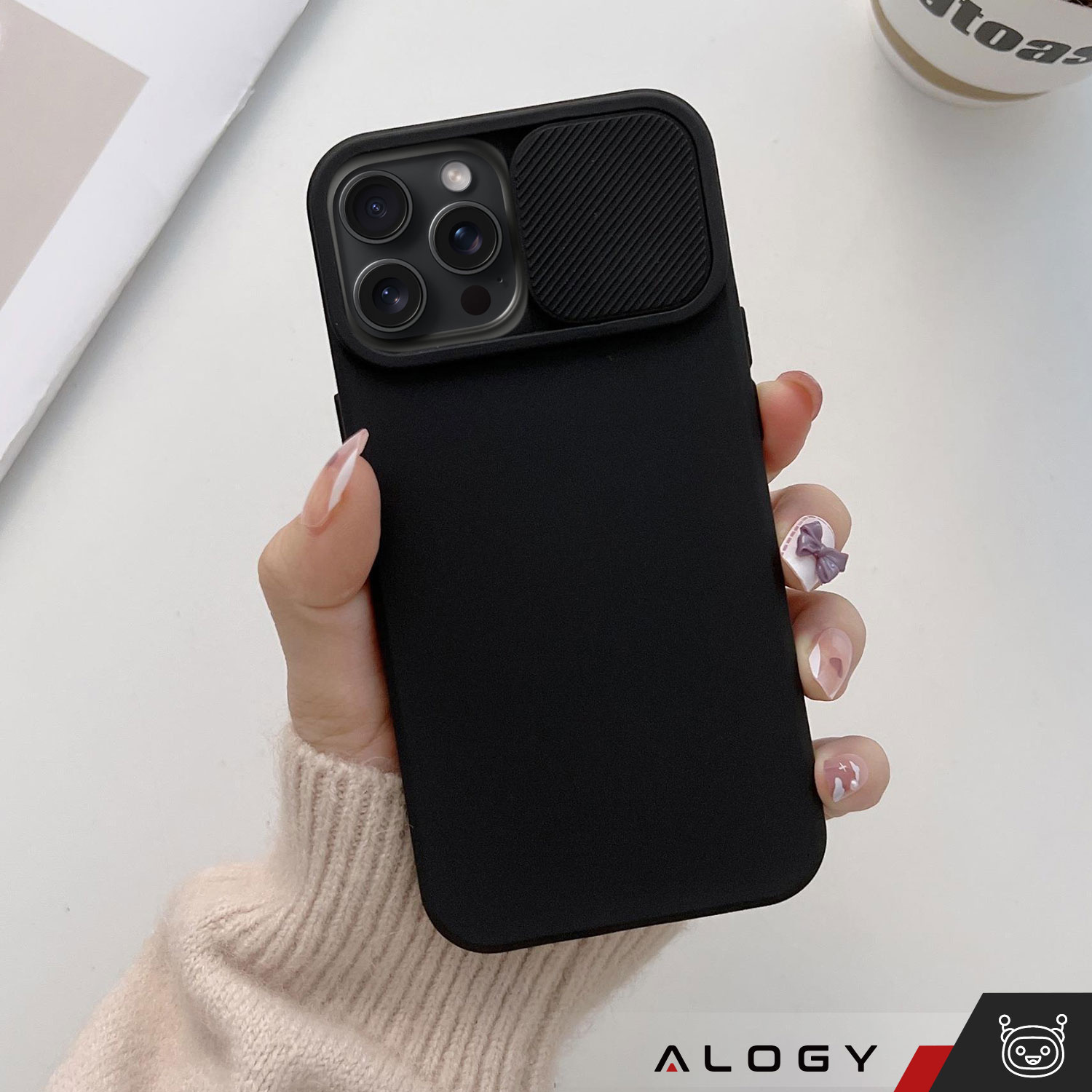 Hülle für iPhone 15 Pro Max Slide Case mit Objektivschutz Kameragehäuse Mattschwarz Alogy Soft Matt Glass x 1
