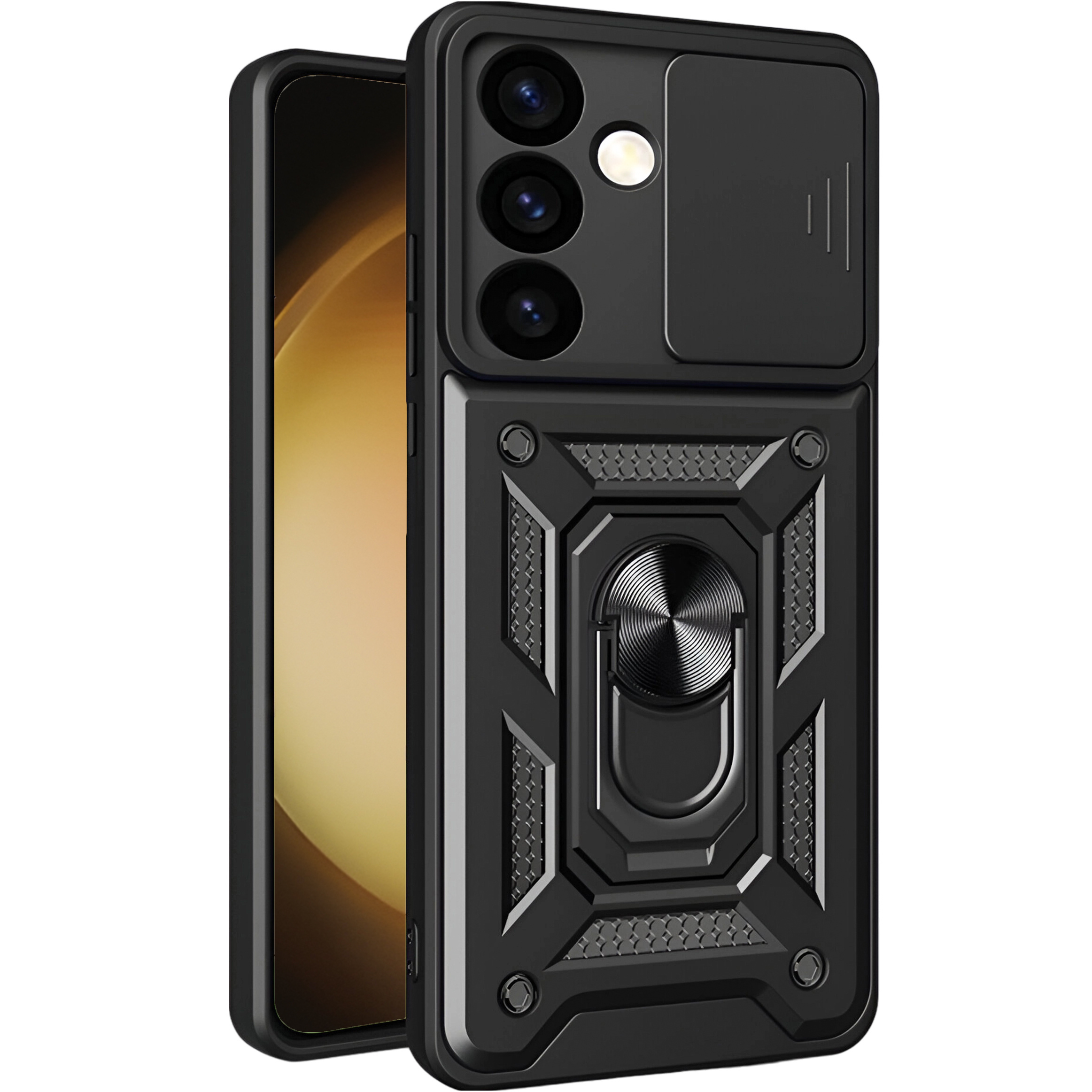 Hülle für Samsung Galaxy S23 FE gepanzertes Slide Case Ringgehäuse Kameraschutz Camshield Alogy schwarz