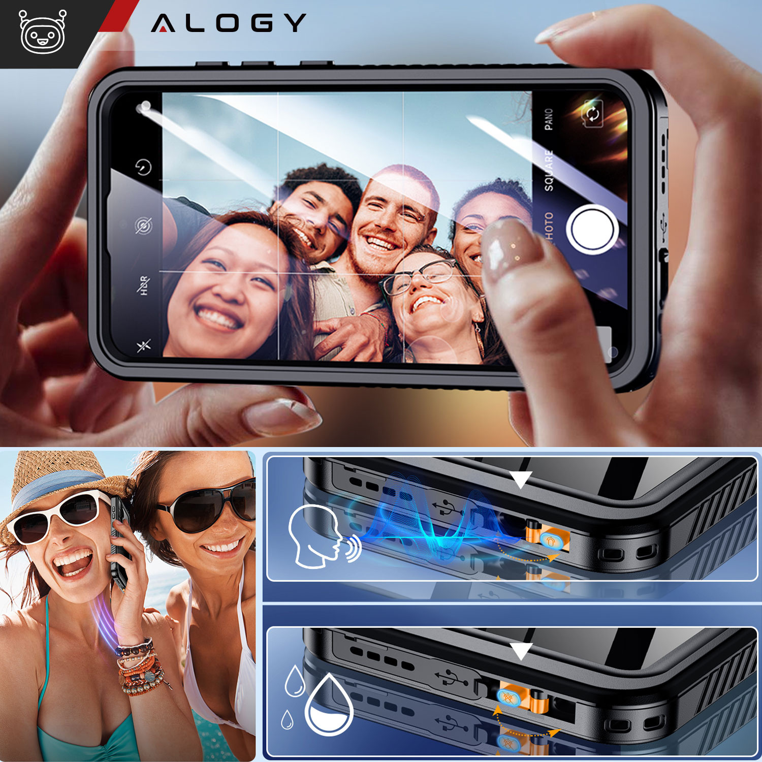 Zusätzlich zum Wasserschutz absorbiert die Alogy-Hülle Stürze perfekt ! Das Design der Hülle schützt das Telefon vor Bruch und das in die Hülle integrierte Glas schützt das Display vor Kratzern und Beschädigungen.