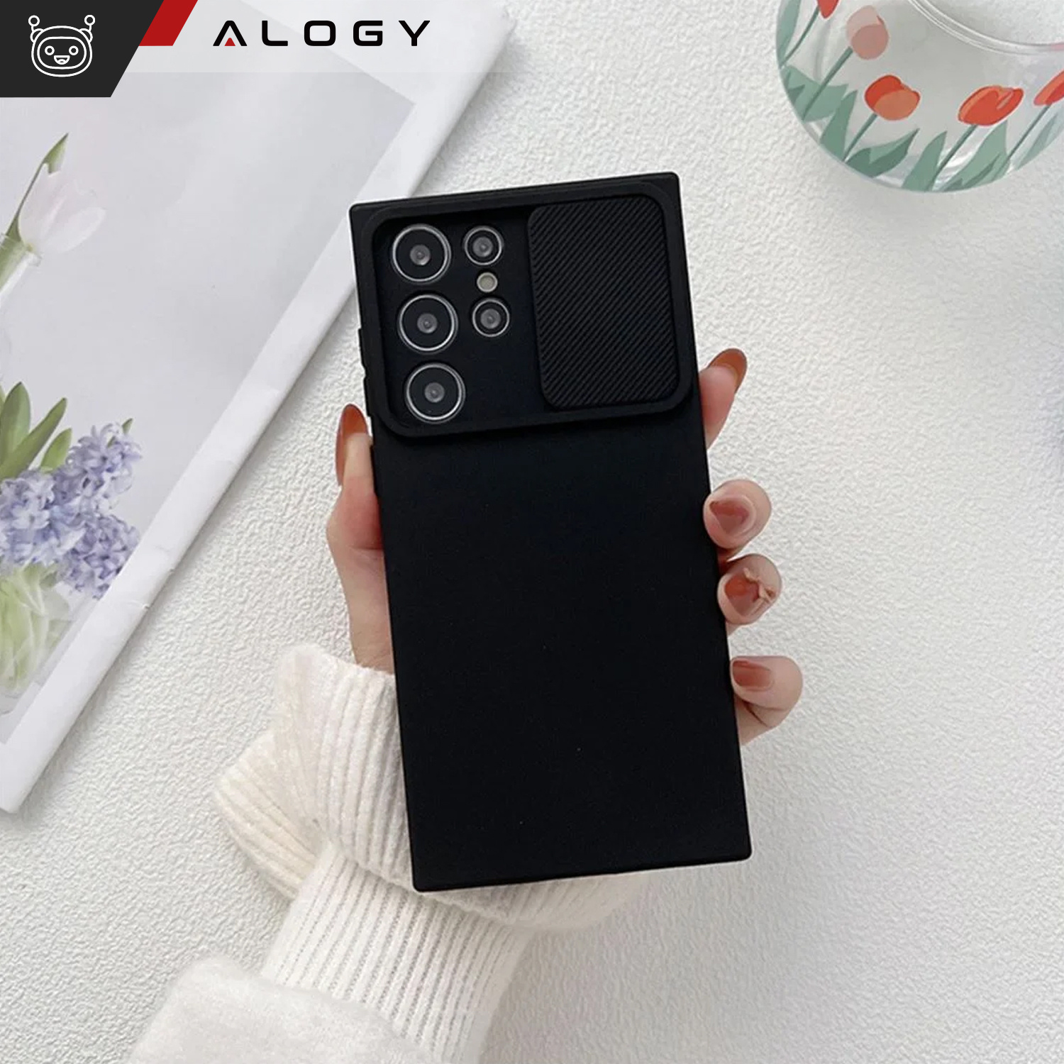 Hülle für Samsung Galaxy S24 Ultra Panzerhülle Schutz Kameraabdeckung Slide Camshield Case Alogy Schwarzes Glas x 1