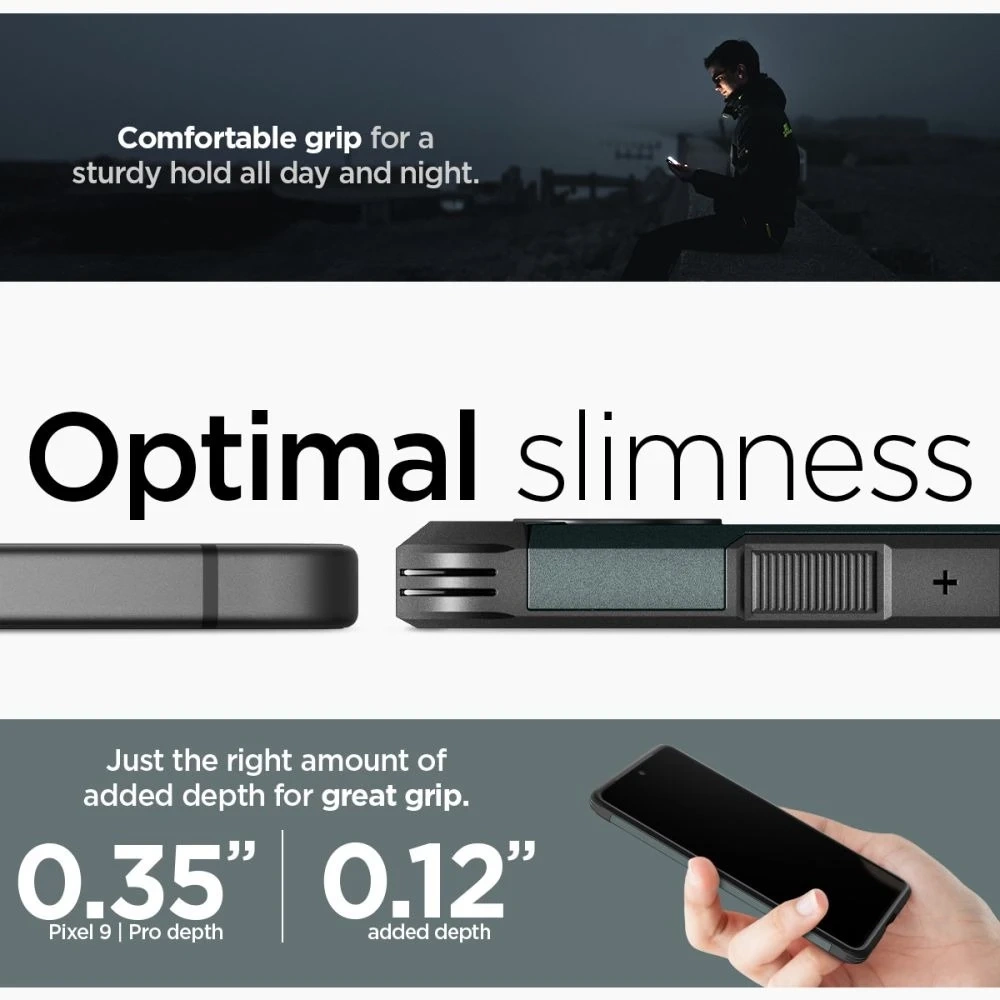 • Spigen Tough Armor Hülle für Google Pixel 9/9 PRO Abyss Green, einzigartiger Telefonschutz mit Militärzertifizierung. Hergestellt aus strapazierfähigem Material, mit stoßdämpfendem Schaumstoff, Betrachtungsständer und Kompatibilität mit kabellosem Laden.