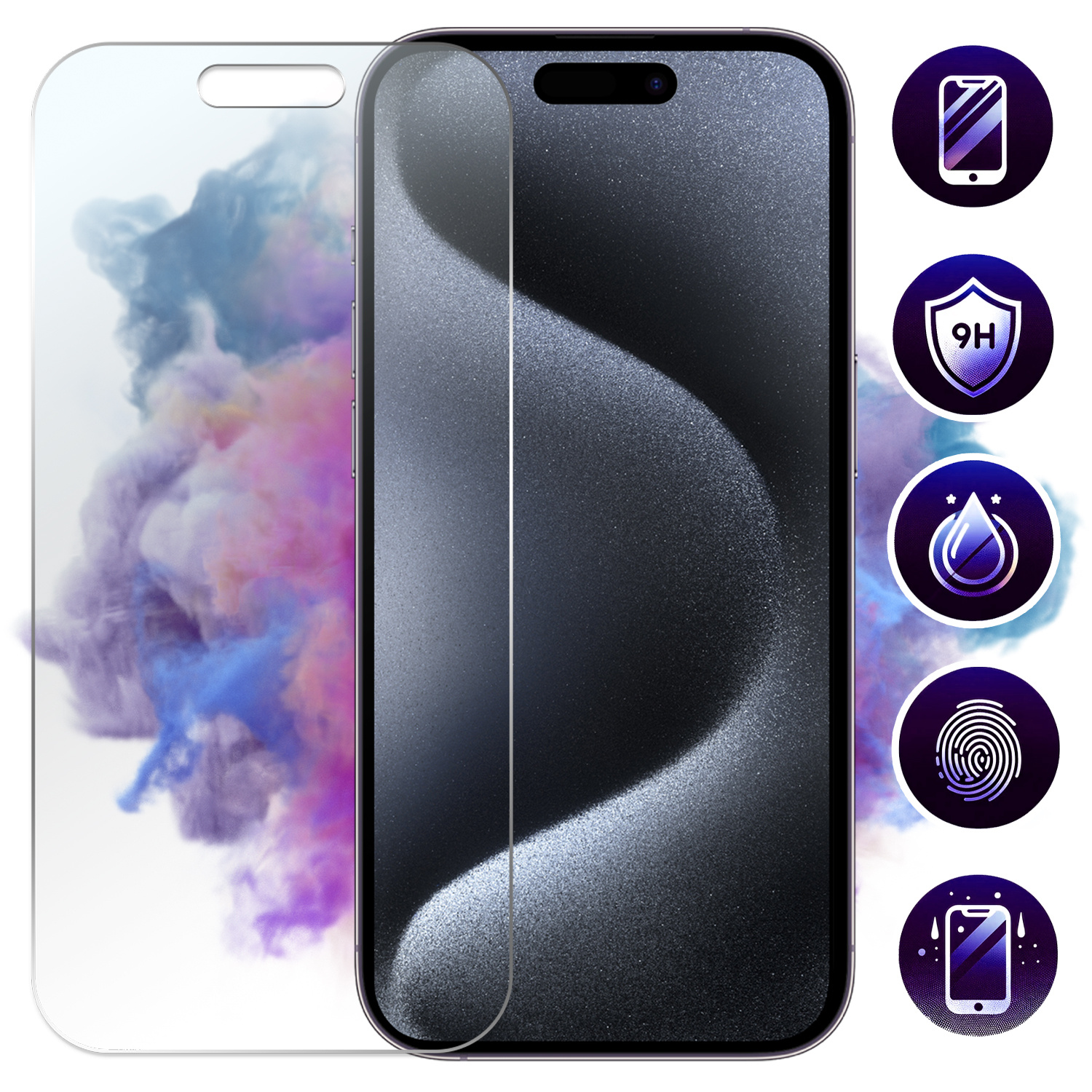 Flexi Glass speziell für das Display des Apple iPhone 15 Pro Max mit einer Härte von 9H ist ein wirksamer Schutz des Smartphone-Bildschirms vor: