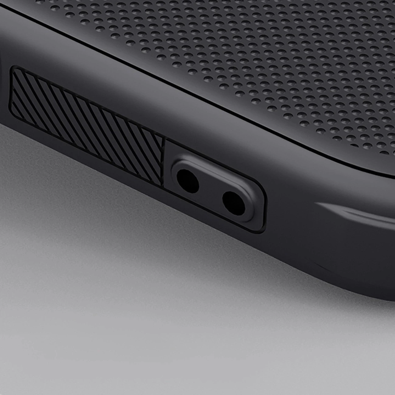 Präzise Aussparungen für alle Anschlüsse und Tasten sorgen für Komfort, ohne dass der Schutz darunter leidet. Erhöhte Kanten schützen Bildschirm und Kamera, wenn das Telefon auf einem Tisch oder in einer Tasche liegt.