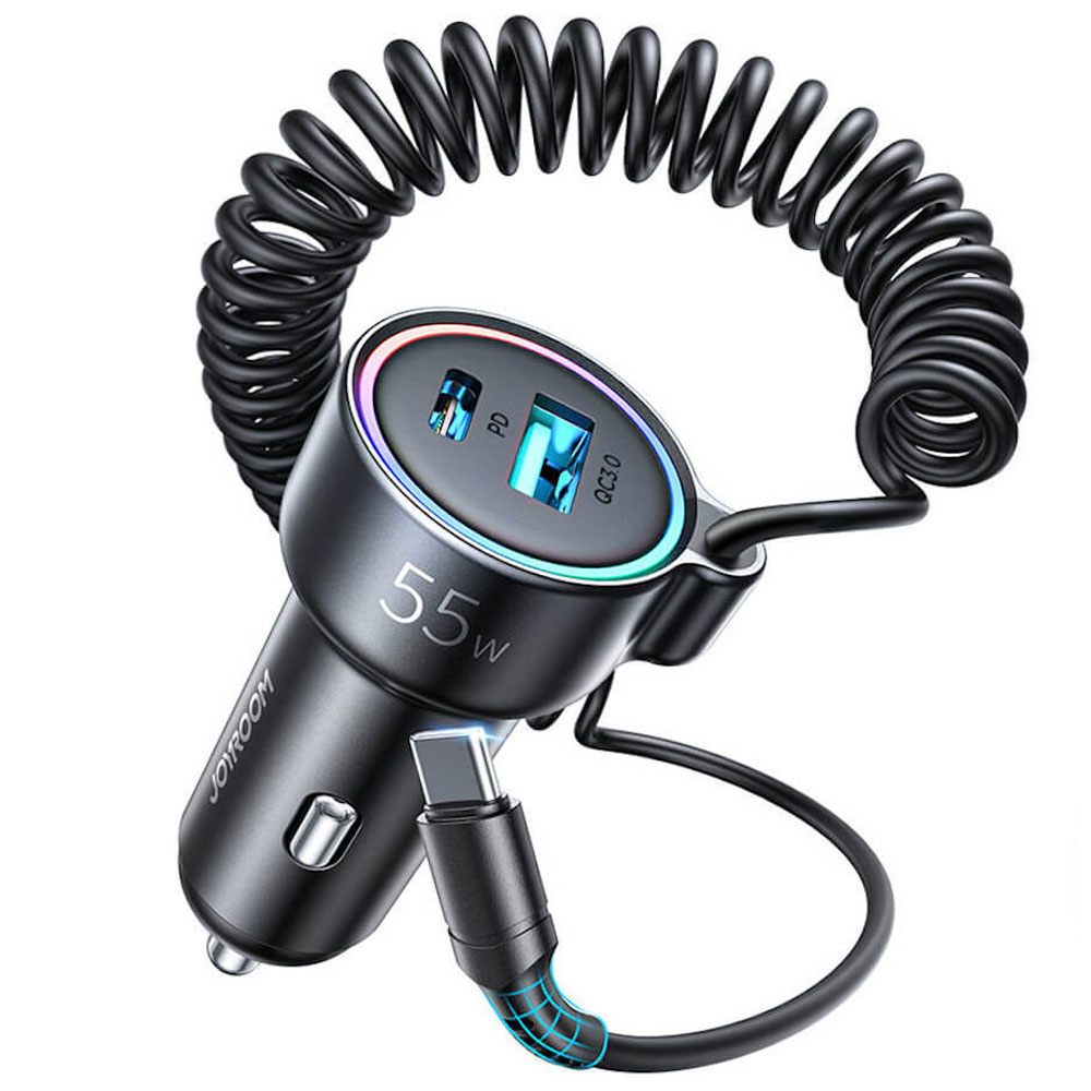 Joyroom Auto-Schnellladegerät 3 in 1 mit USB-Typ-C-Kabel 1,5 m 55 W schwarz (JR-CL07) x 1