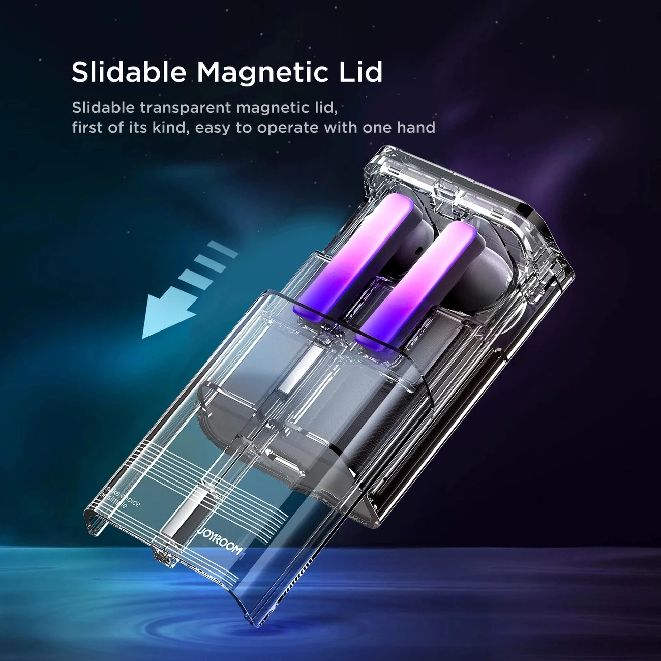 Entdecken Sie eine neue Audio-Dimension mit den Joyroom JR-TC1 IceLens Series TWS-Kopfhörern. Das transparente, verschiebbare Gehäuse mit vier LED-Beleuchtungsmodi zieht die Blicke auf sich und lässt Sie Ihren Stil zum Ausdruck bringen.