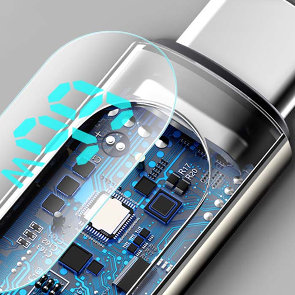 Das Kabel ist mit einem Display ausgestattet , sodass Sie seine Leistung laufend überprüfen können. Außerdem können Sie Dateien/Musik oder Fotos mit einer Geschwindigkeit von bis zu 480 Mbit/s versenden .