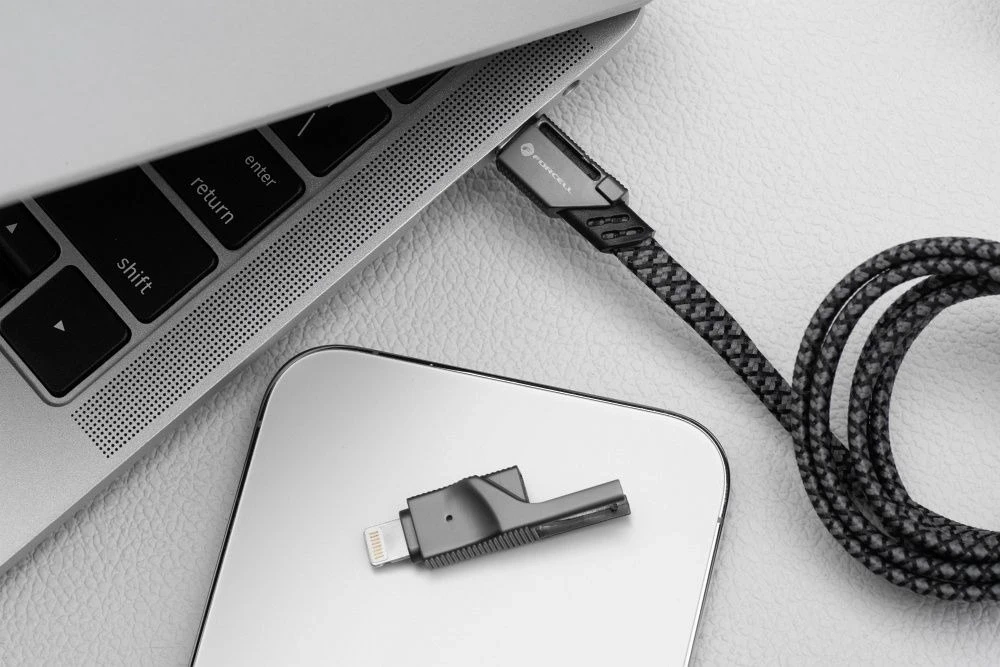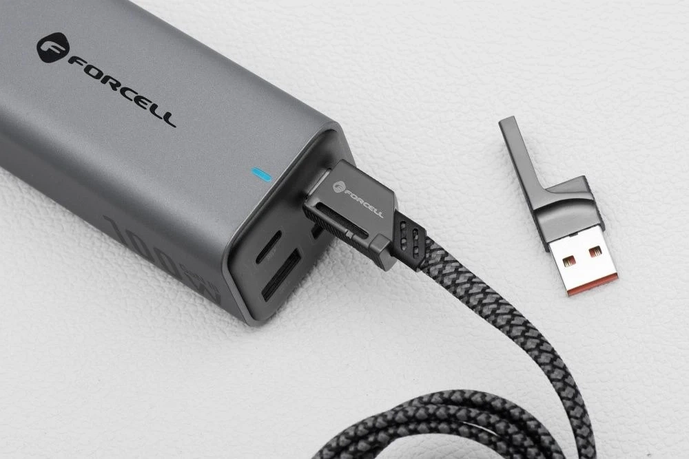 Suchen Sie ein Kabel für alles? Wählen Sie Forcell 4in1 – ein Kabel mit austauschbaren USB-C-, USB-A- und Lightning- Anschlüssen , mit dem Sie eine Vielzahl von Geräten – vom iPhone bis zum Laptop – schnell und sicher aufladen können.