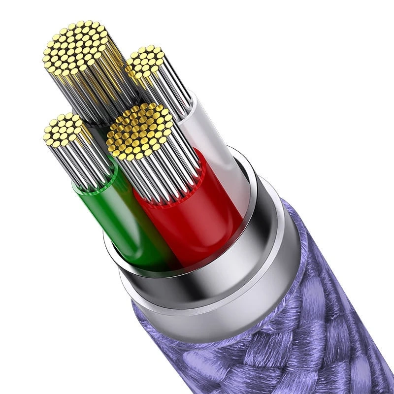Hersteller Baseus Modell CAXS000005 Farbe Violett Material Aluminiumlegierung Nylon Länge 1,2 m Stromstärke 5 V / 3,5 A Übertragungsgeschwindigkeit 480 Mb/s Anschlüsse USB-C, Micro-USB, Lightning