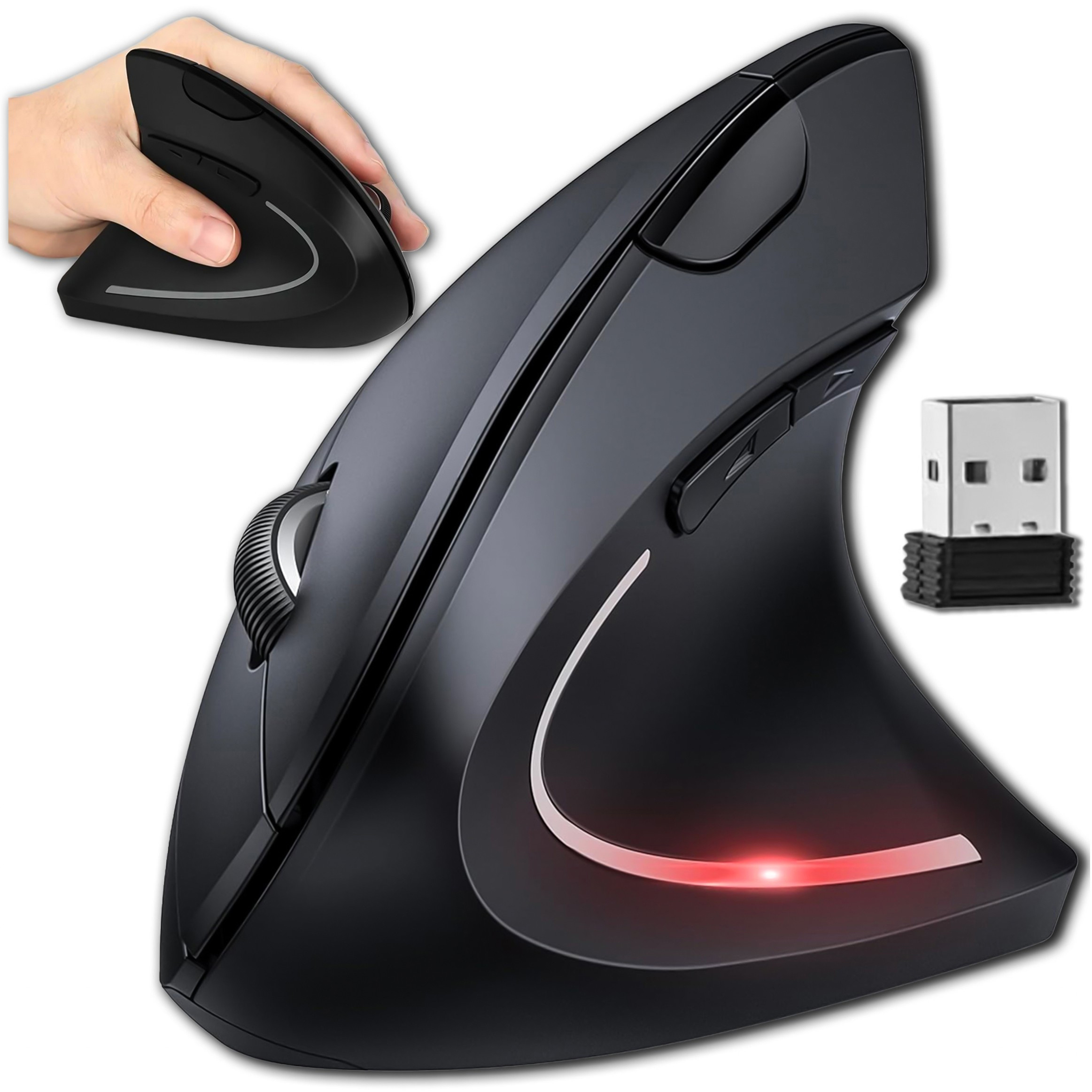 Kabellose vertikale Gaming-Maus, vertikal, ergonomisch, für Laptop-PC, Rechtshänder, geräuschlos, Schwarz x 1