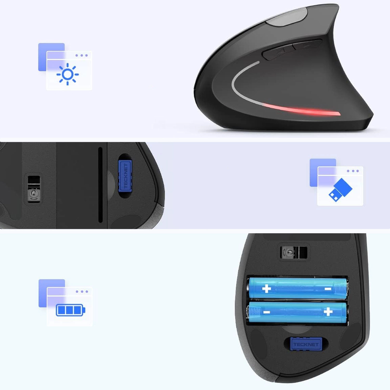 Vertikale Mäuse wurden entwickelt, um die mit der Verwendung klassischer Computermäuse verbundenen Spannungen und Beschwerden zu minimieren . Dank ihres ergonomischen Designs können Handgelenk und Unterarm eine natürlichere Position beibehalten, was dazu beiträgt, Probleme zu reduzieren, die durch langes Arbeiten am Computer entstehen, wie zum Beispiel das Karpaltunnelsyndrom oder den Tennisarm.