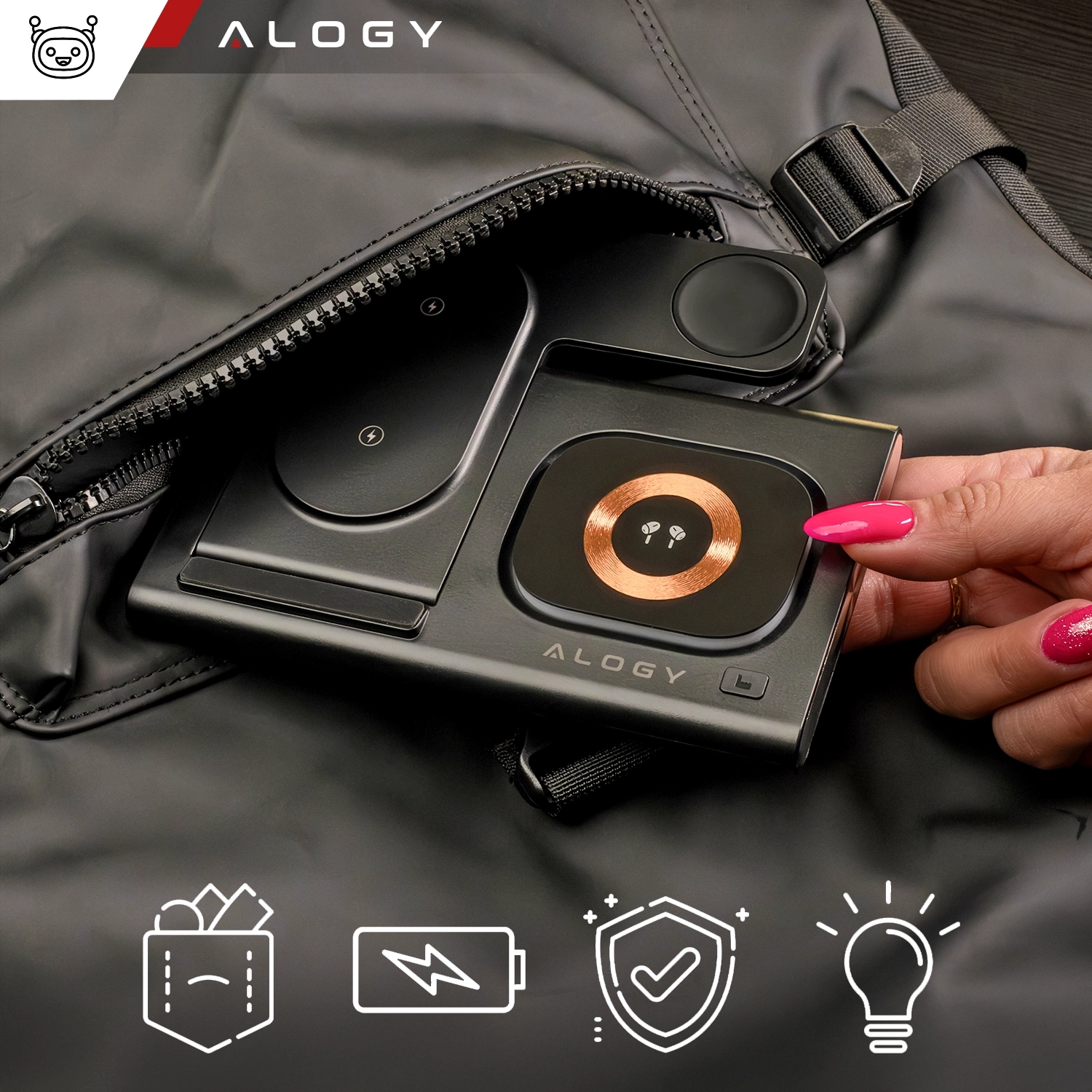 ⭐ Das multifunktionale Induktionsladegerät Alogy ist ein innovatives Gerät, mit dem Sie drei verschiedene Geräte gleichzeitig laden können.