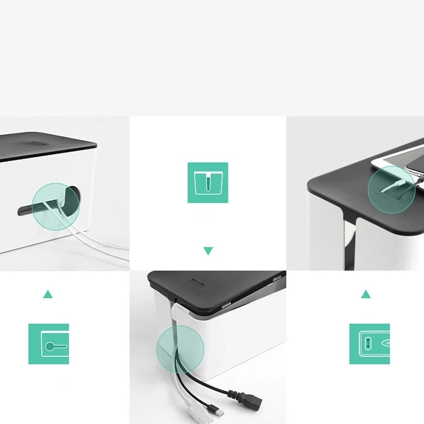 Kabelsalat unter Ihrem Schreibtisch? Telefonladegeräte vermasseln den Wohnzimmertisch? Vergiss es. Der Organizer für Kabel von Ugreen ermöglicht es Ihnen auch, sie in Ordnung zu halten und sie zusätzlich vor neugierigen Blicken zu verbergen. Legen Sie die Steckdosenleiste hinein, schließen Sie den Deckel und führen Sie die Kabel durch die praktischen Öffnungen. Rutschfeste Pads sorgen dafür, dass die Box immer an Ort und Stelle bleibt .