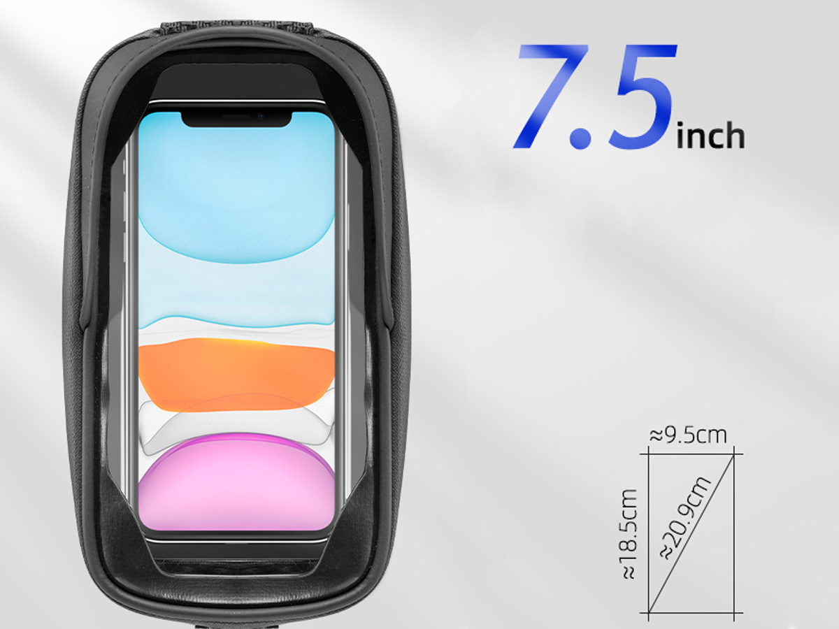 Der RockBros-Koffer wird am Rahmen neben dem Lenkrad montiert. Darüber hinaus können wir durch ein spezielles, transparentes Fenster aus empfindlichem TPU immer die Navigation auf dem Telefon sehen, da es mit dem Touchscreen von Geräten unter 7,5 Zoll kompatibel ist, ohne es entfernen zu müssen.