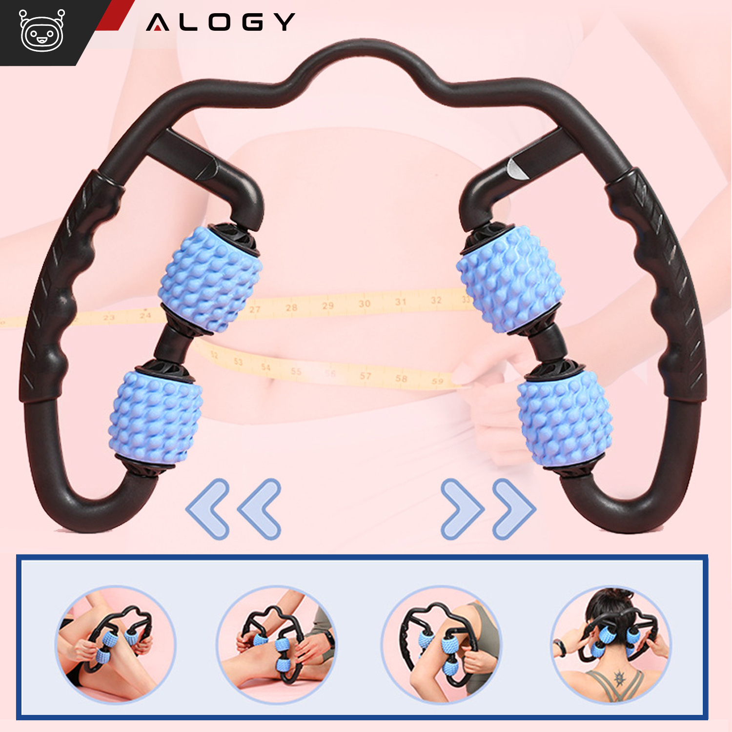 Bequeme Passform am Körper, ergonomisches Design und die Möglichkeit, den Massagedruck unabhängig einzustellen, sind die Merkmale, die dafür sorgen, dass das Alogy-Massagegerät eine komfortable und stressfreie Massage in Ihrer Reichweite bietet.