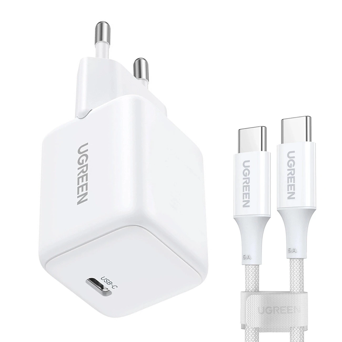 Ładowarka Ugreen X513 30W GaN + kabel USB-C 1m Biała PD PPS