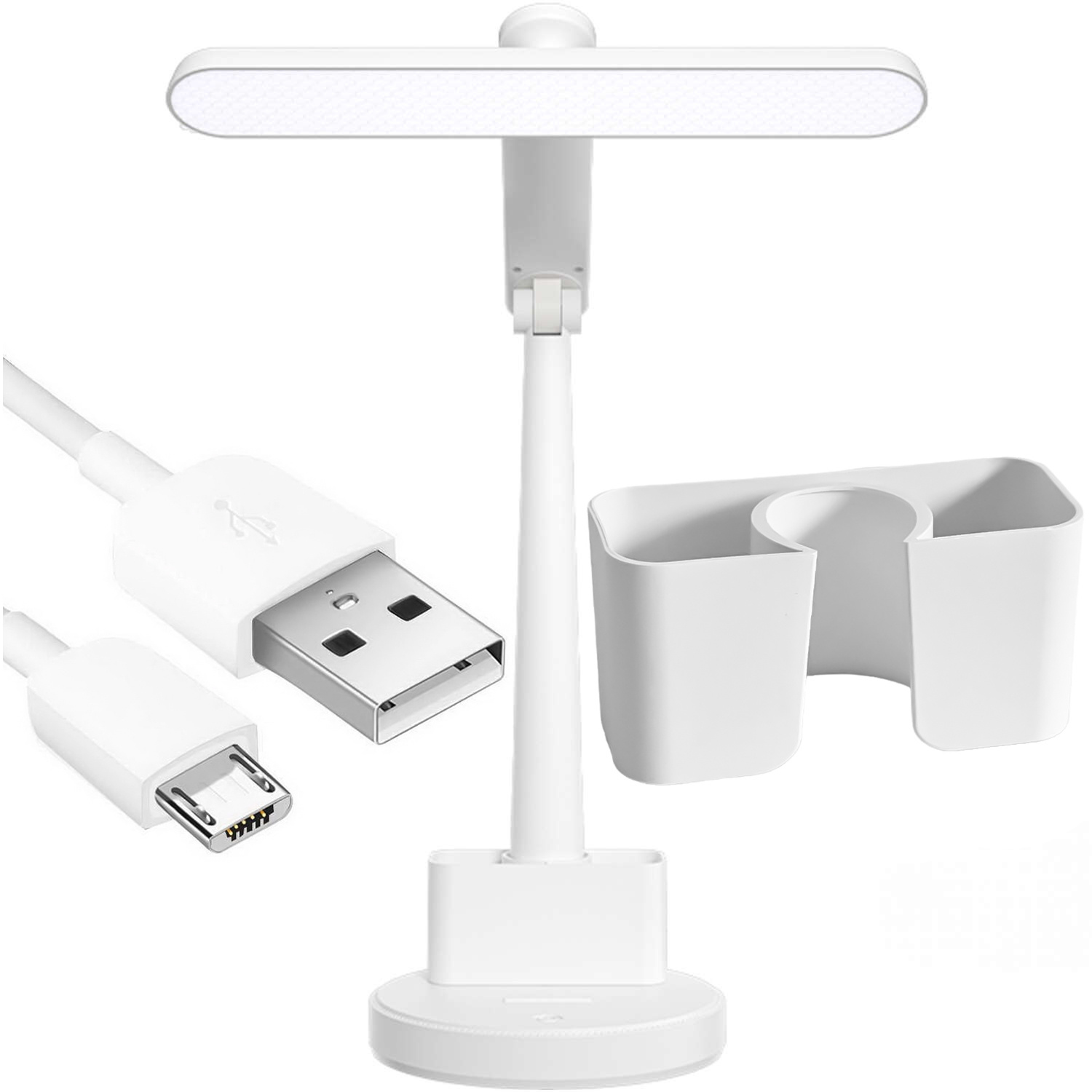 LED-Schreibtischlampe, Nachttischlampe, USB-Schreibtischlampe, Touch-verstellbar, Organizer und Telefonständer, Weiß
