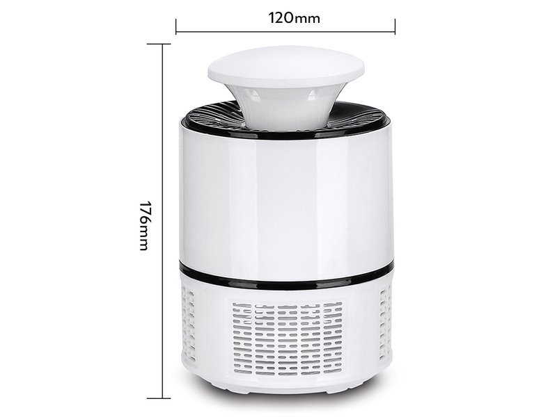 Die Insektenvernichtungslampe arbeitet schnell und sehr effektiv. Es verwendet eine LED-Lampe, die ultraviolettes UV-Licht aussendet und so Insekten anlockt, die, wenn sie in der Nähe sind, durch den im Gehäuse versteckten Ventilator sofort in den Behälter gesaugt werden (der Behälter lässt sich leicht reinigen, indem man ihn vom Boden des Behälters abschraubt). Lampe, wodurch die Lampe wiederverwendbar ist). Der Behälter ist so konstruiert, dass Insekten nicht herauskommen können.