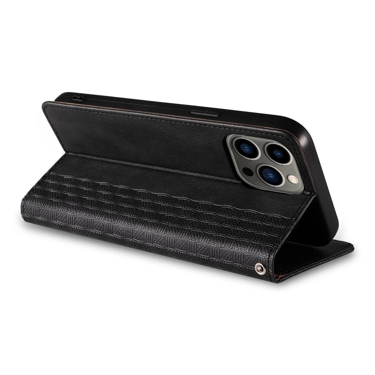 Magnetband-Hülle für iPhone 13 Pro Max, Tasche, Brieftasche, Mini-Lanyard-Anhänger, schwarz x 1