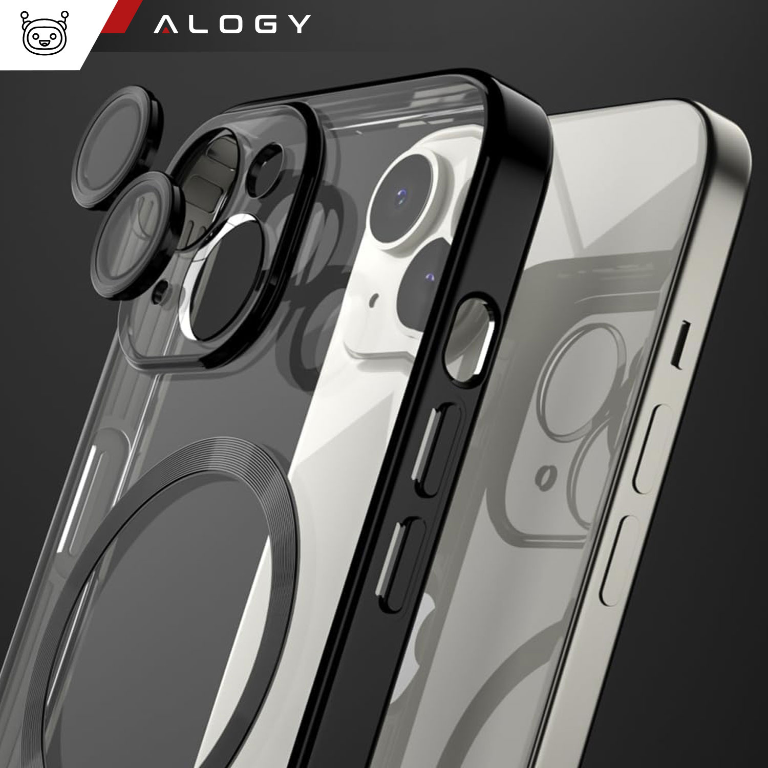 MagSafe Hülle für iPhone 15 Plus Glamour Luxus Cover Slim Ring Alogy Schwarz Transparentes Glas x 1