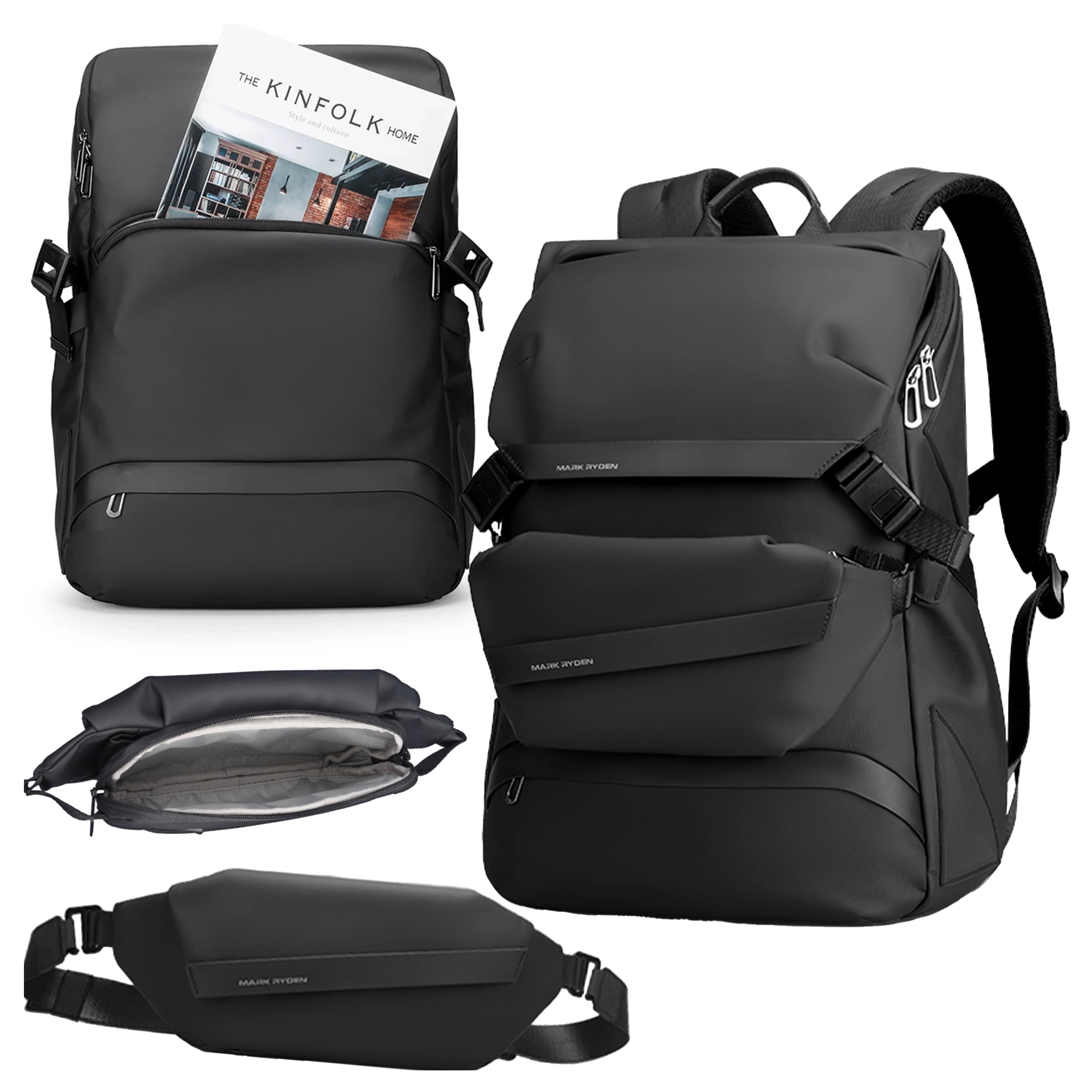 Mark Ryden Rucksack mit abnehmbarer Hüfttasche (2-in-1), Handgepäck, kostenlos, wasserdicht, 18 l, mit Laptopfach (bis 15,6 Zoll), Hüfttasche, City- und Reiserucksack, 40 x 30 x 14 cm – Schwarz x 1