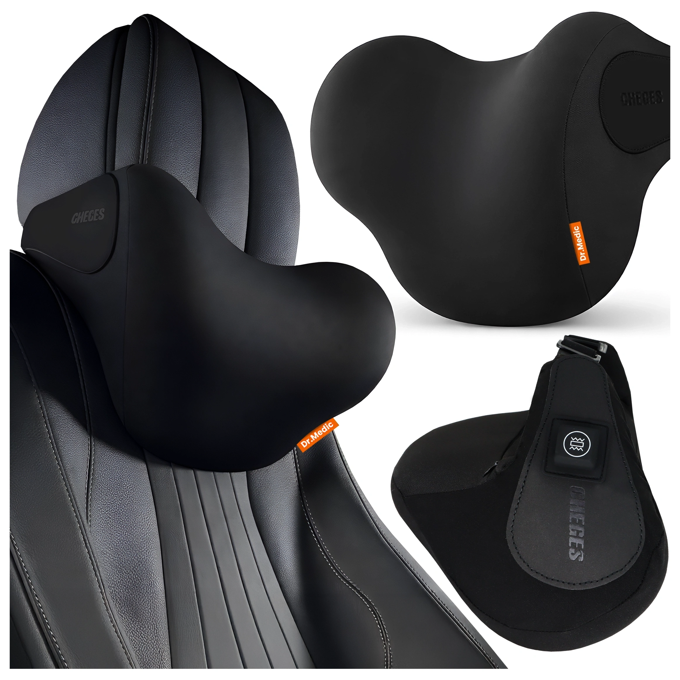 Massagekissen für die Auto-Kopfstütze – ergonomische Unterstützung für Kopf, Nacken und Nacken, elektrisches Vibrationsmassagegerät für Fahrer und Beifahrer – Dr.Medic RelaxDrive™ x 1