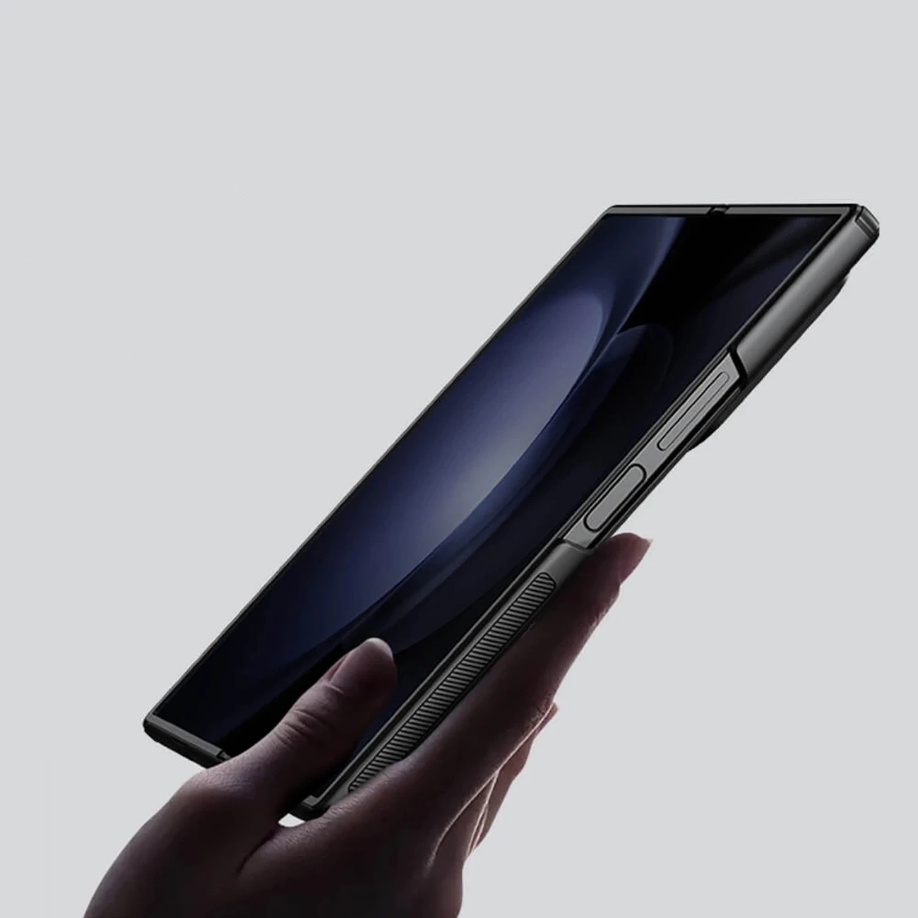 "https://hurtel.com/hpeciai/f61f7d61d1b9ec0b2fd64ed82ec548e5/pol_po_Etui-Nillkin-Super-Frosted-Shield-Fold-na-Samsung-Galaxy-Z-Fold-6-5G-czarne-172509_7.jpg" alt="Hand haltend Telefon in der Nillkin Super Frosted Shield Pro Magnethülle">