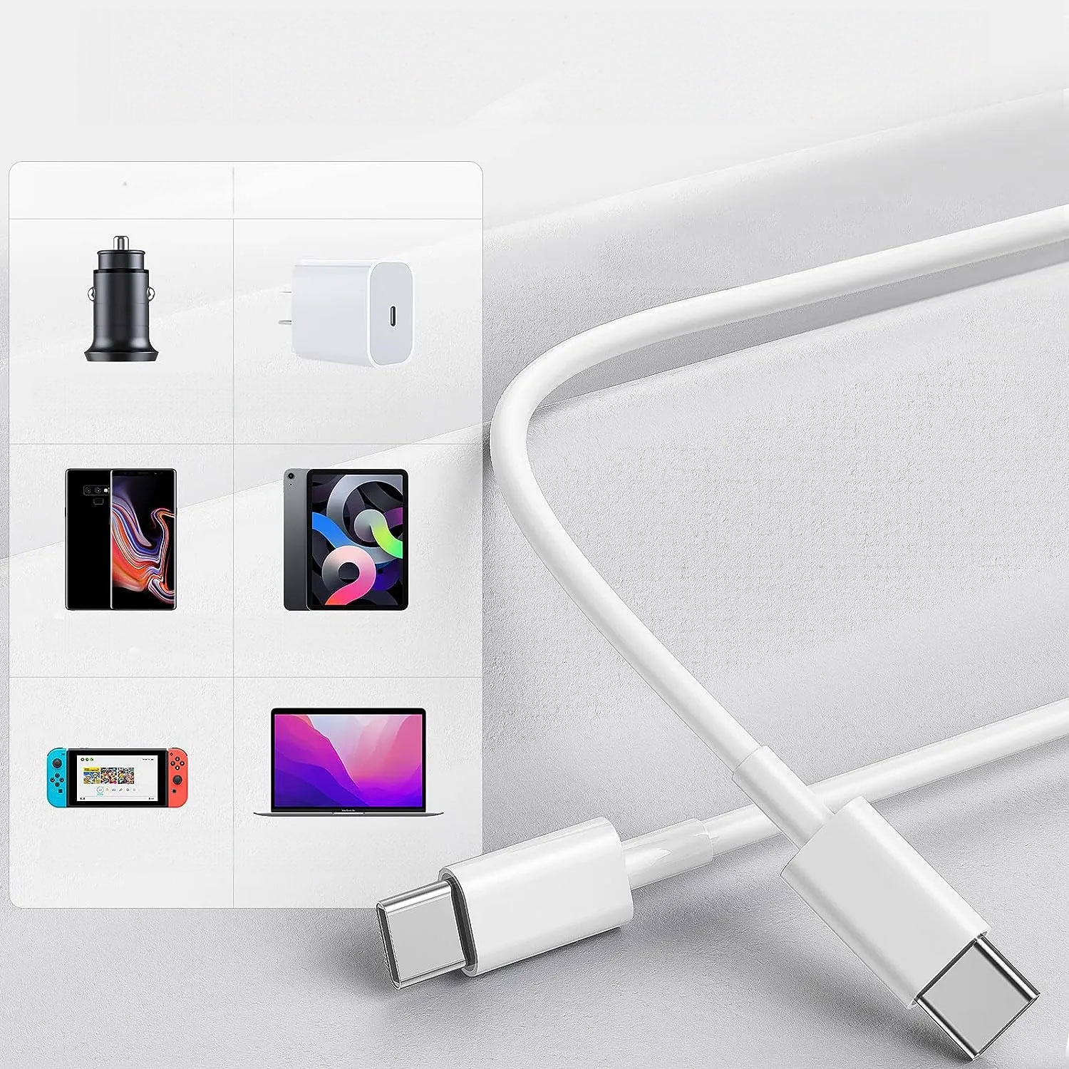 Das Kabel ist für alle Geräte mit einem USB-C-Typ-C-Anschluss gedacht: die neuesten Modelle von iPhone 15, iPad, MacBook, iMac, Mac.