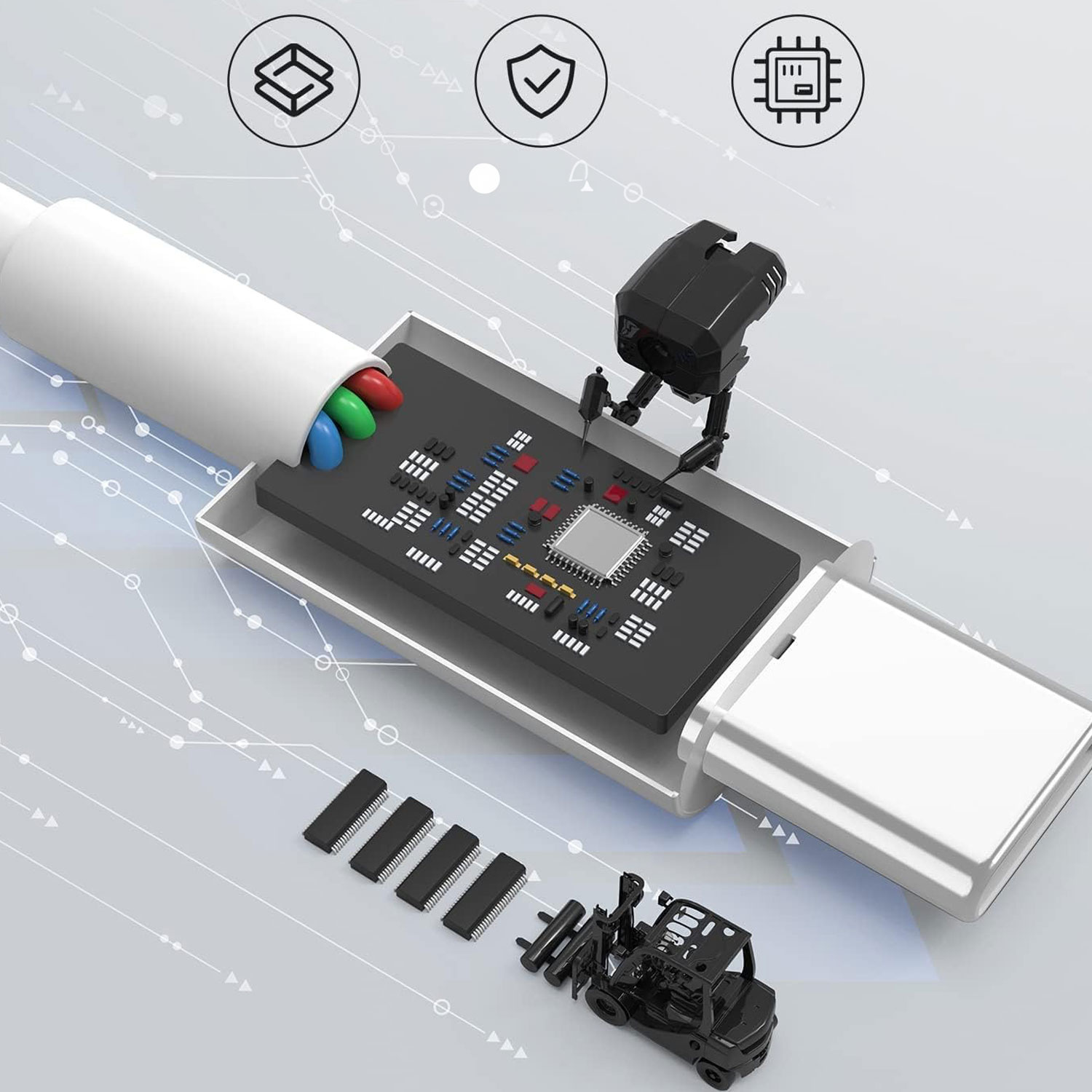Das Kabel verfügt über eine intelligente Ladetechnologie, die ein Überladen des Smartphones verhindert und unser Gerät schützt vor: