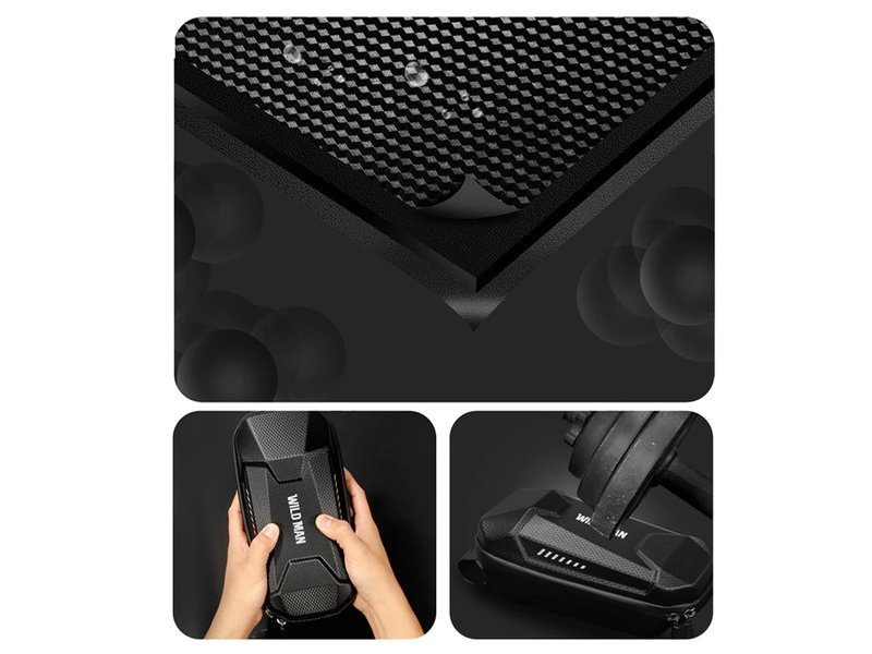 Die universelle wasserdichte Fahrradtasche Wildman Bag M Electric Scooter mit zweiteiliger Struktur ist eine hochwertige Tasche, die für die Montage auf einem Elektroroller entwickelt wurde. Geschlossen wird die Fahrradtasche mit einem Doppelreißverschluss aus hochwertigem verstärktem PU-Kunststoff. Die Installation erfolgt mit 4 starken Klettbändern. Das Hauptfach hat ein Netzfach, ein Stofffach und ein Mittelfach, das auch eine kleine Netztasche enthält. Es kann als praktische Tasche mit Scooter-Werkzeug oder als Tasche für unser Zubehör verwendet werden.