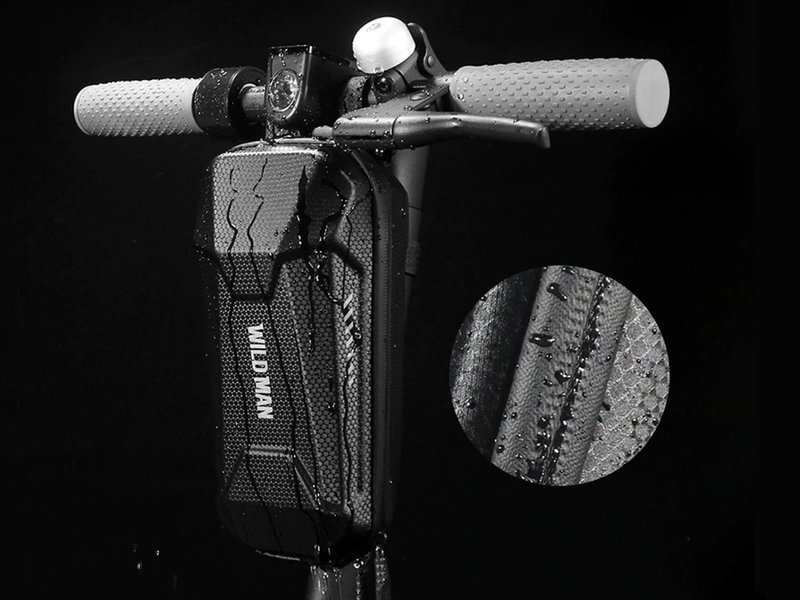 Die Wildman-Abdeckung hat ein versteiftes Gehäuse, sie fungiert als Kofferraum, der mit Klettbändern am Rollerlenkrad befestigt wird, darunter: Xiaomi Mijia M365, M365 Pro. Eine packbare Tasche, in der alle Dinge Platz finden, die Sie für eine Fahrt benötigen.