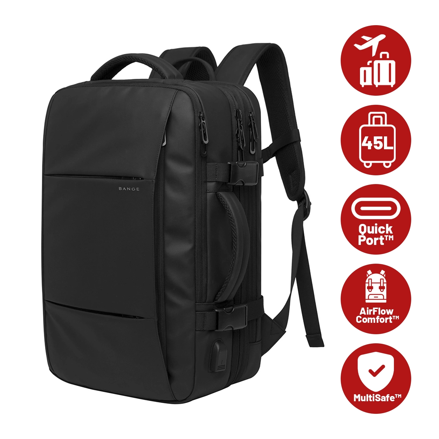 Reiserucksack Bange BackPack Business erweiterbarer Rucksack Geräumige Tasche für 17,3-Zoll-Laptop mit USB-Anschluss Schwarz x 1
