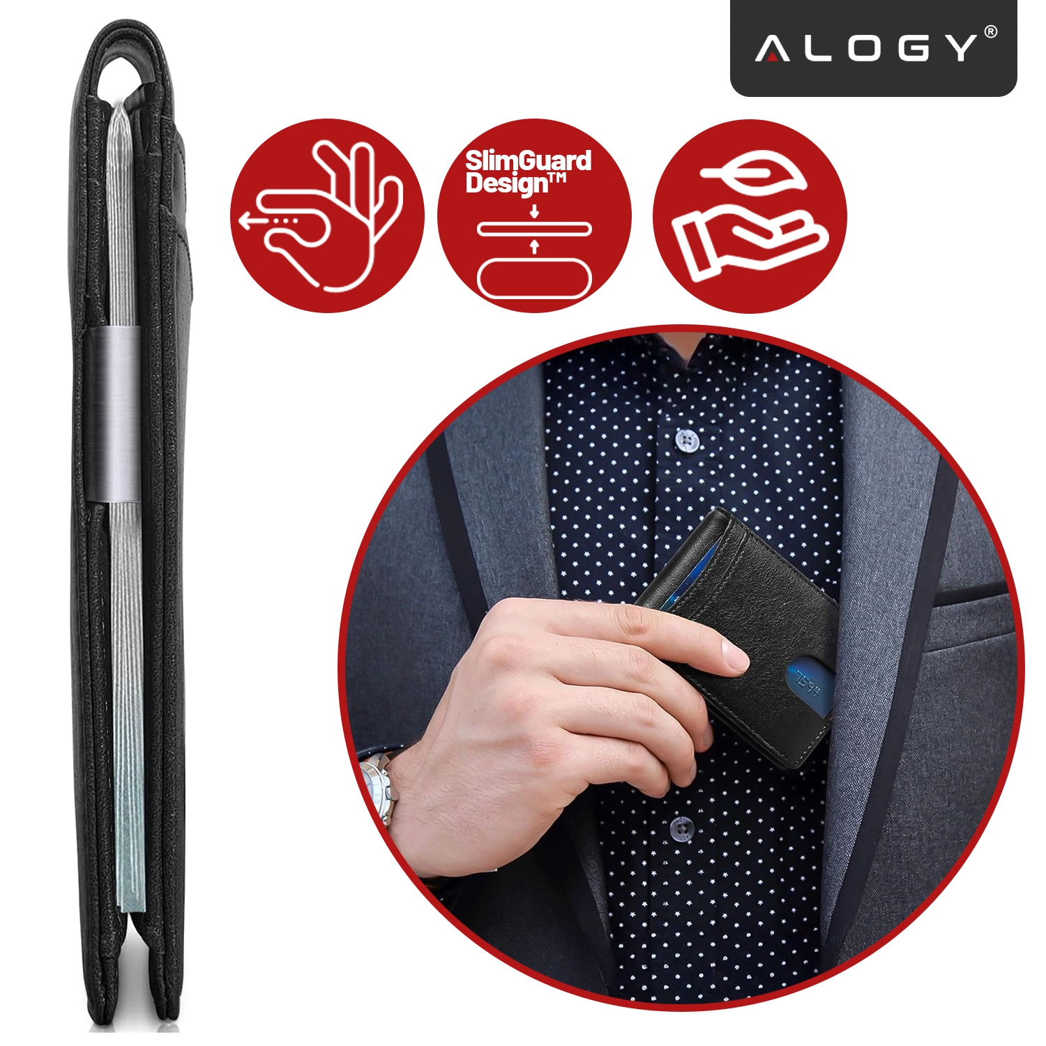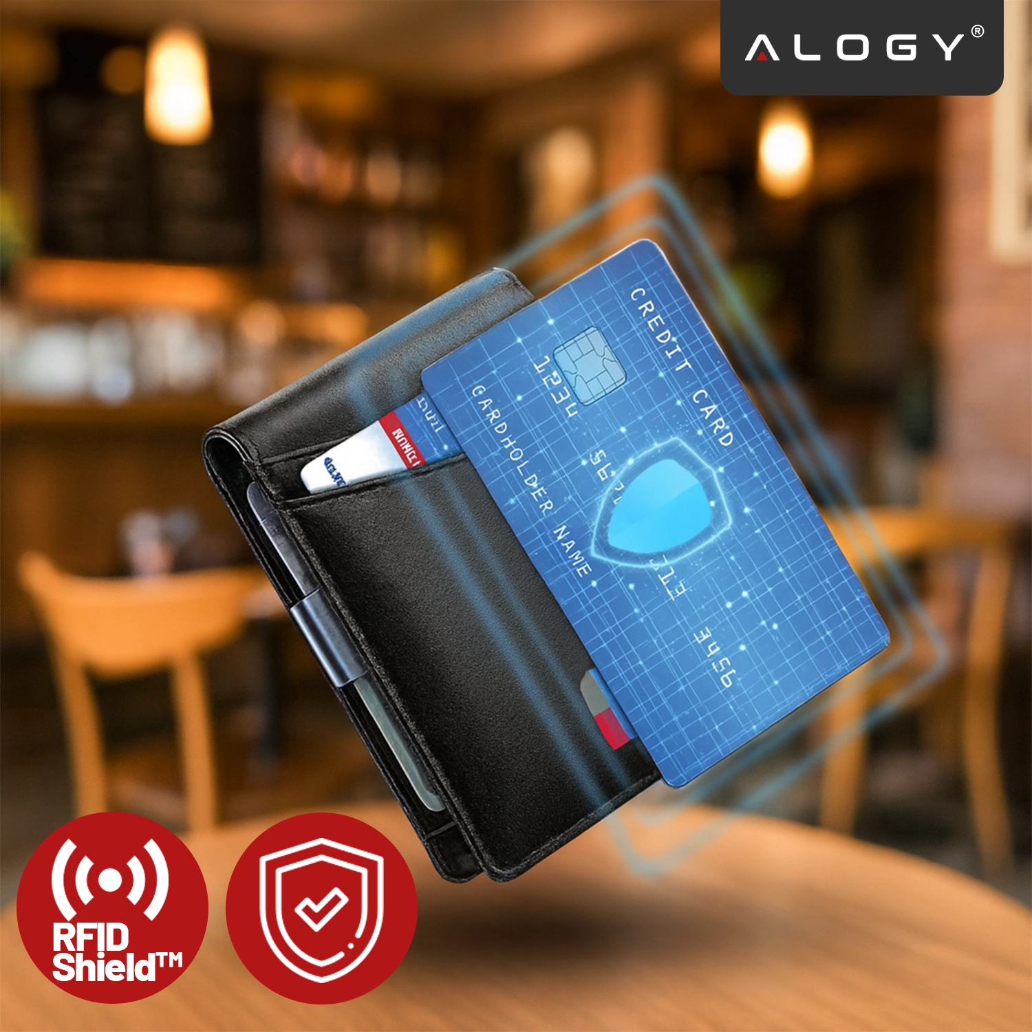 RFID-Schutzhülle für Geldbörsen, blockiert Signale für Karten und Dokumente, dünn, klein, Alogy, Herren- und Damengeldbörse, Schwarz